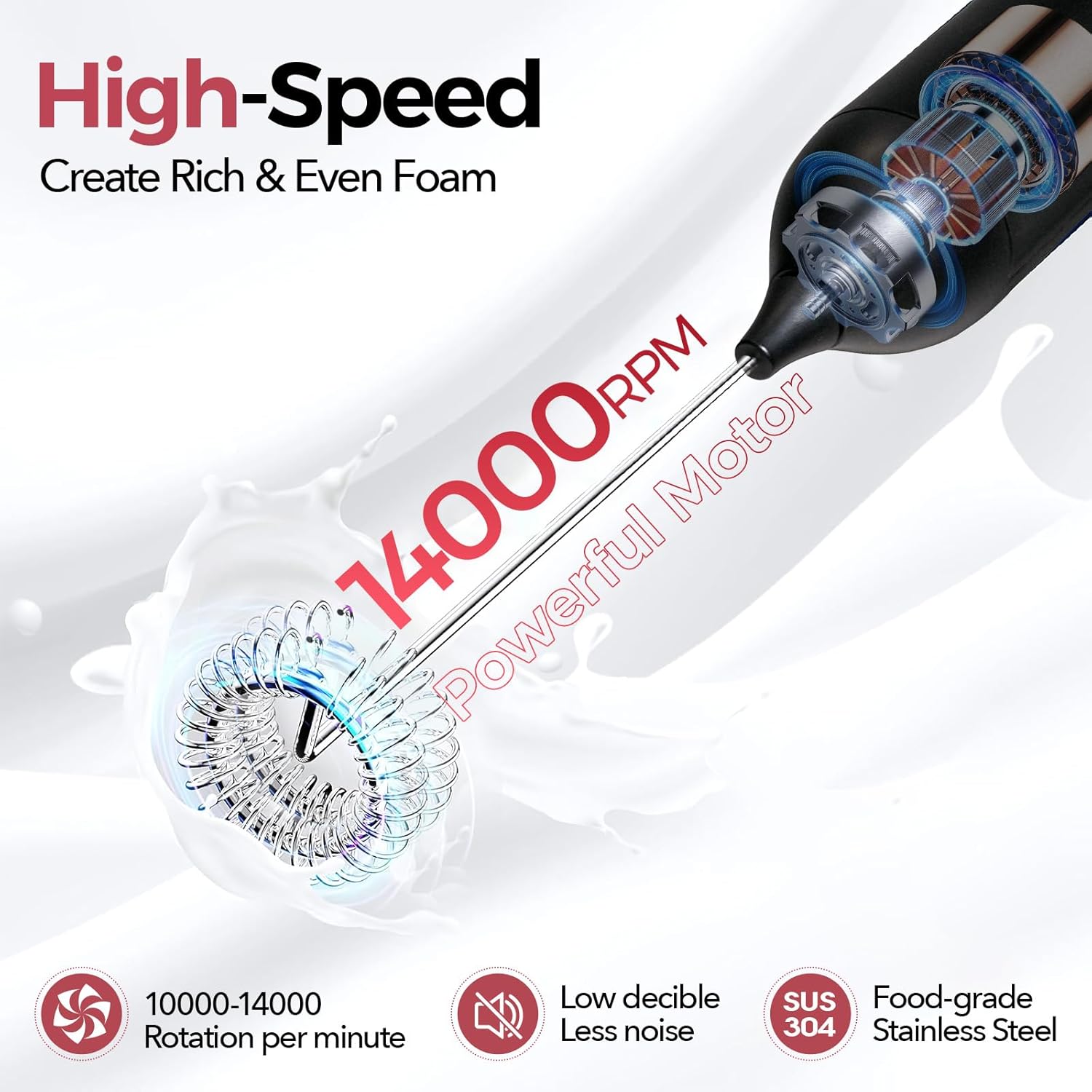 - 3-Speed Mastery: This electric handheld mixer features High/Medium/Low buttons to customize foam density. The milk frother creates barista-level foam in 15-20 seconds, perfect for coffee shops at home or camping