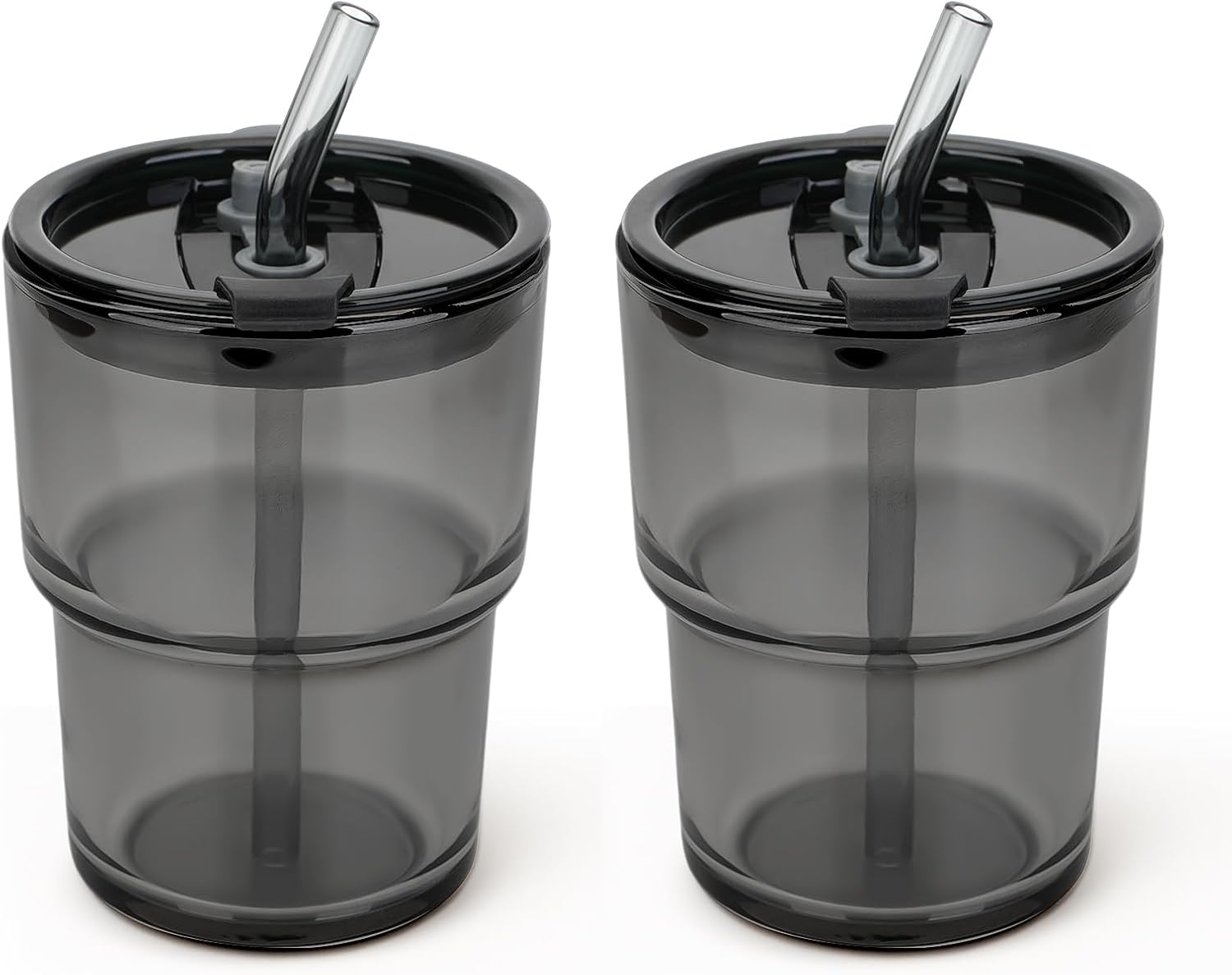 13 oz Glass Tumbler with Glass Straw and Lid, Leak-Proof Reusable Travel Cup for Iced Coffee, Tea, Matcha, Fruit Juice – Thick Wall Clear Water Bottle (Gray, 2 Pack)