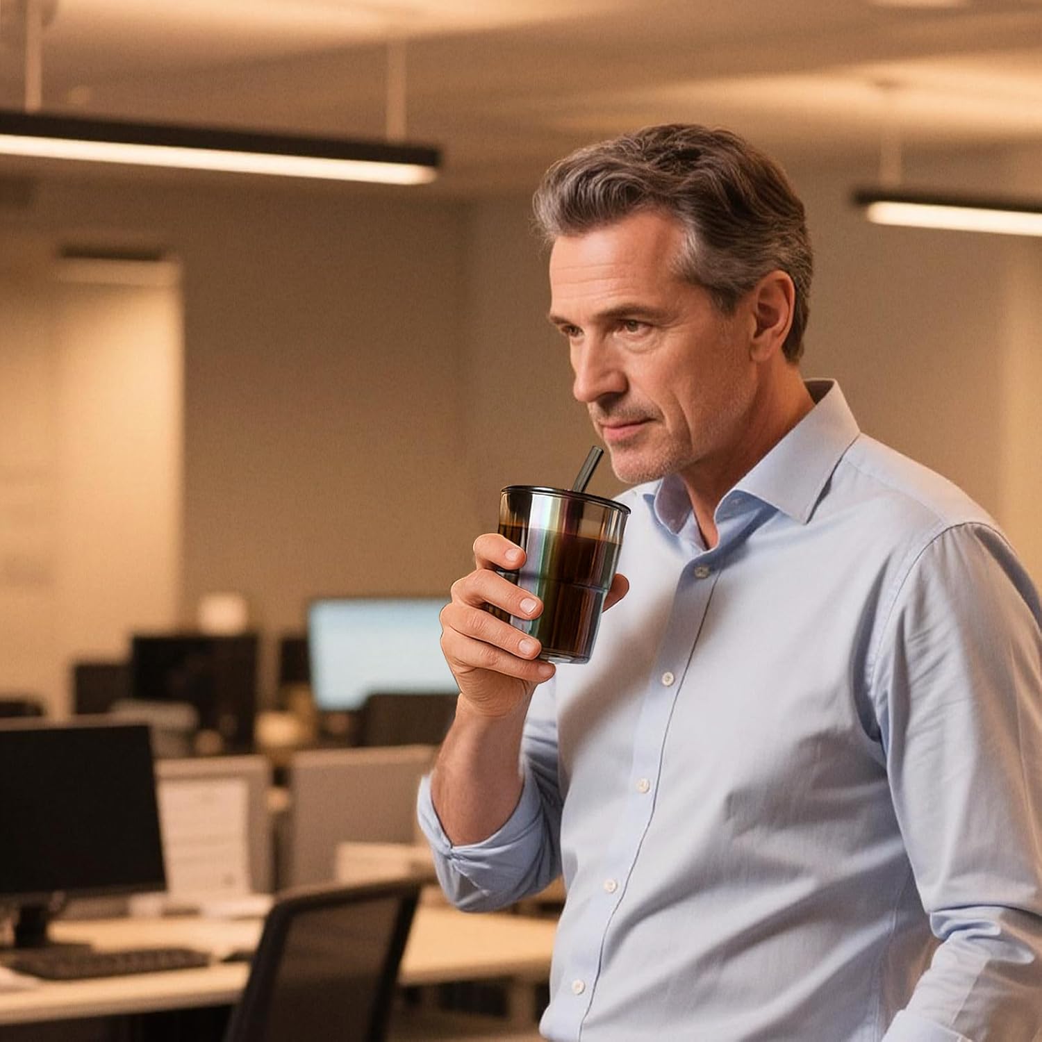 - Leak-Proof 2-in-1 Lid: Features a secure silicone-sealed lid with two sipping options—use the glass straw or sip directly through the built-in drinking spout