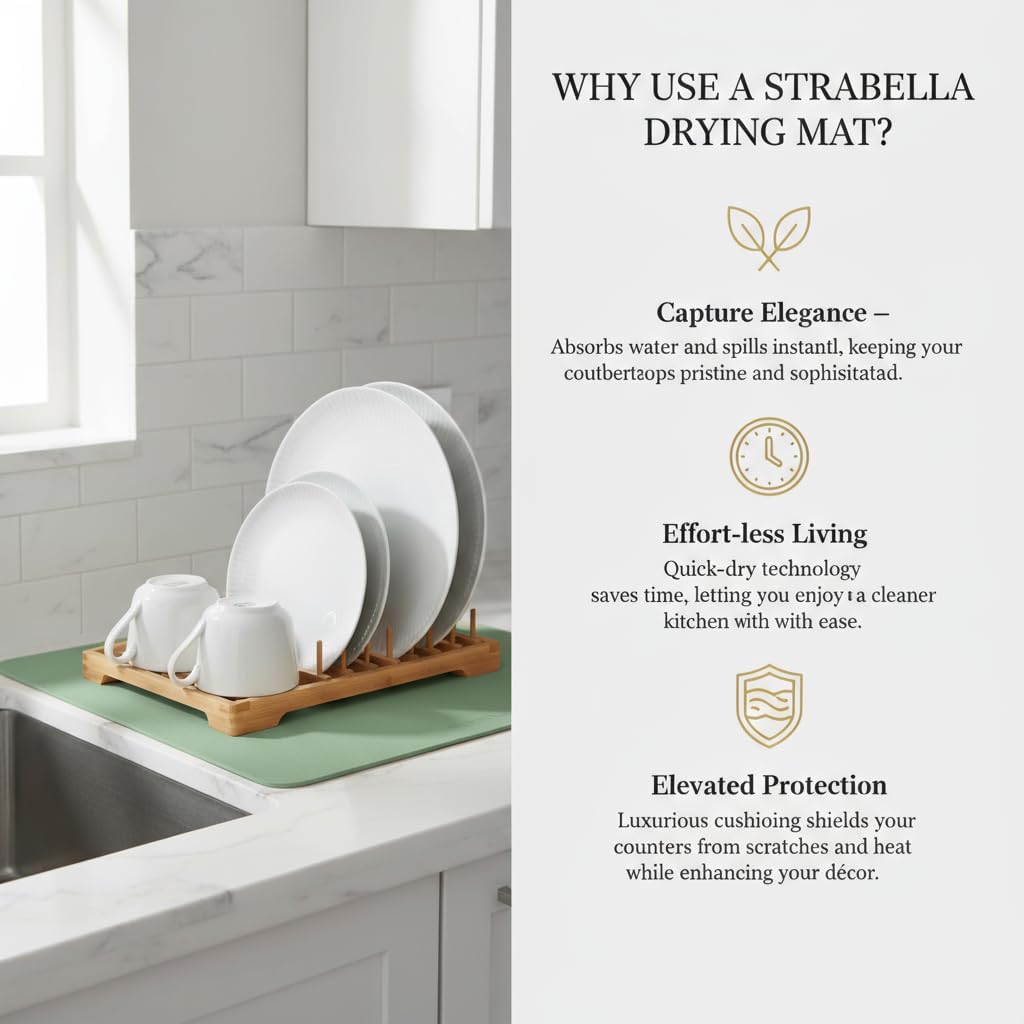 - EXCEPTIONAL ABSORBENCY: Experience the superior absorbent power of our Dish Drying Mat, designed to quickly soak up moisture from freshly washed dishes, ensuring a faster and more efficient drying process.