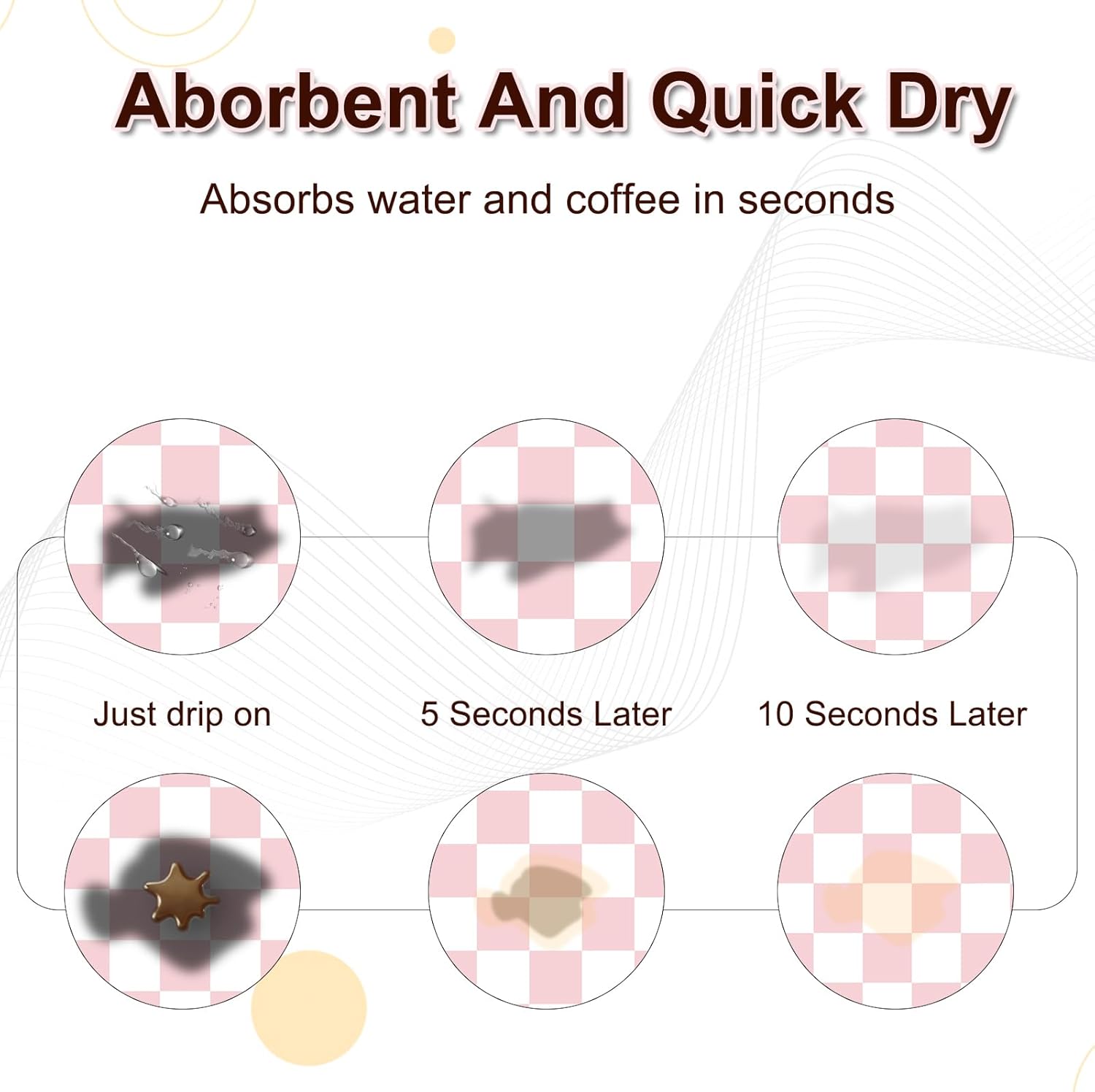 Dish Drying Mat for Kitchen, 15.7’’ X 17.7’’ Coffee Bar Mats for Countertop Fit Under Coffee Maker, Checkered Drying Mat, Hide Stain Rubber Backed Espresso Machine Absorbent Drying Pad, Pink & White