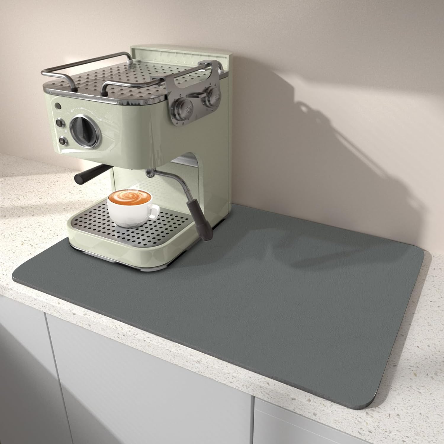 - Stain-Resistant & Durable Design: This coffee bar mat made of PU material and diatomaceous earth for superior stain resistance. Effortlessly hides coffee spills, milk splatters, and other messy stains without frequent wiping. The coffee machine mat is highly durable construction ensures long-term reuse, even in busy environments.