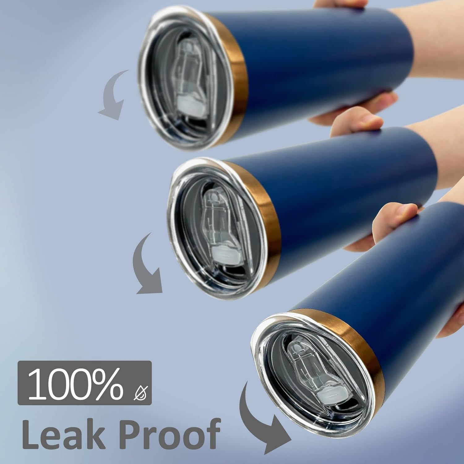 20 oz Skinny Tumblers Bulk, Stainless Steel Insulated Tumbler with Lids and Straws, Slim Double Wall Powder Coated Travel Coffee Mugs, Reusable Cup for Hot and Cold Drinks (Navy,1 pack)