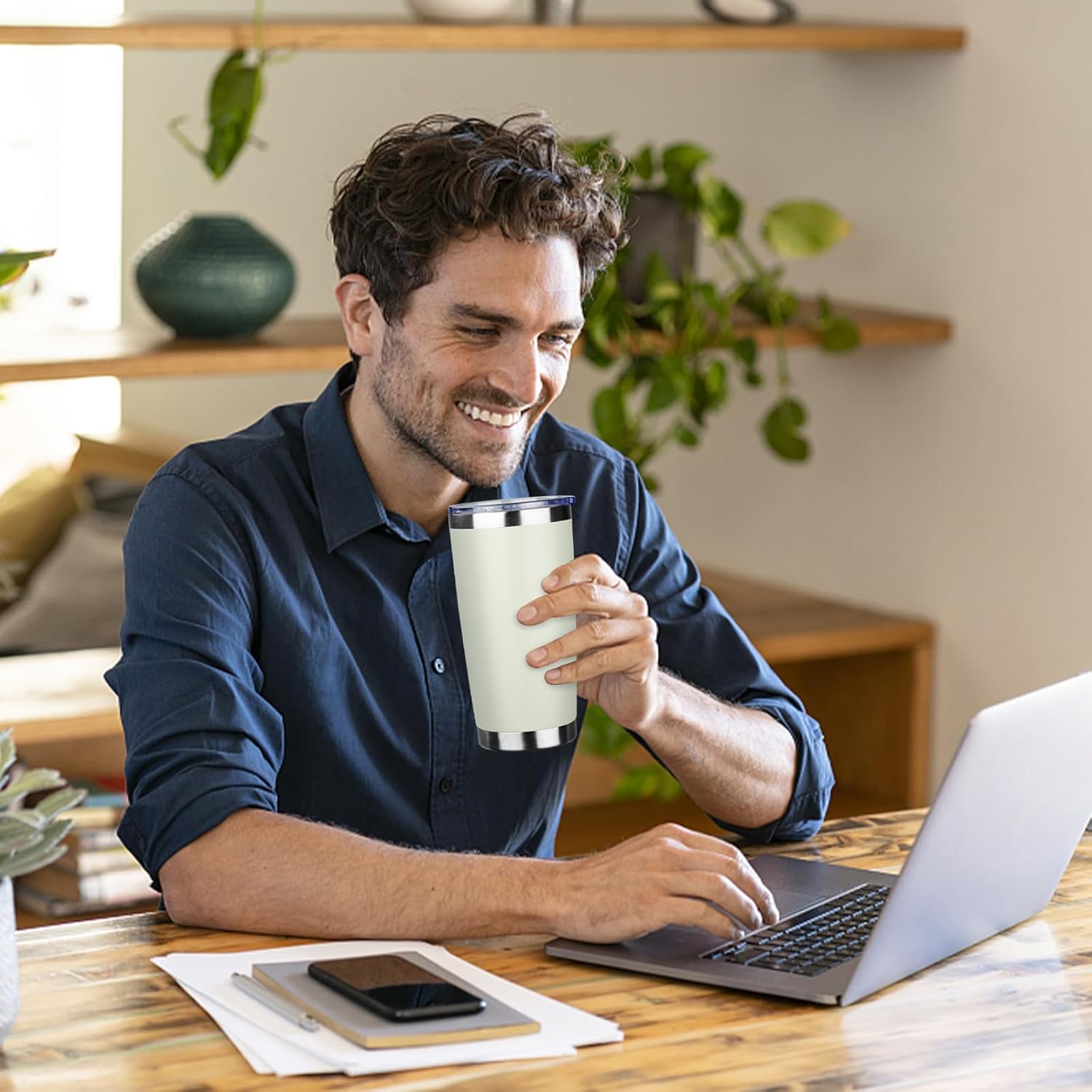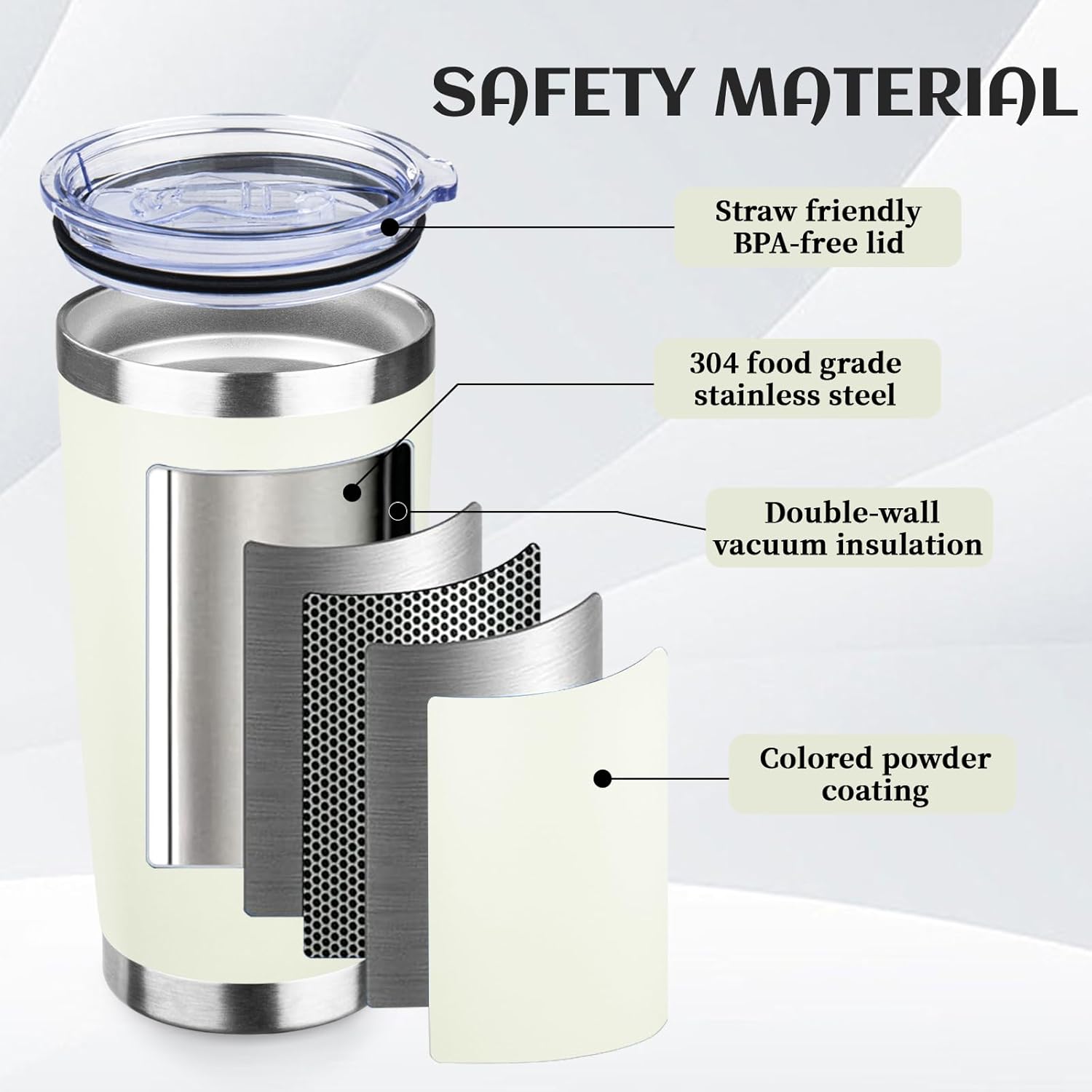 20oz Tumbler Bulk with Lid and Straw, Stainless Steel Double Wall Vacuum Insulated Travel Mug, Powder Coated Coffee Cups for Hot and Cold Drinks,Funny Gifts for Women Men(Cream-coloured,1)