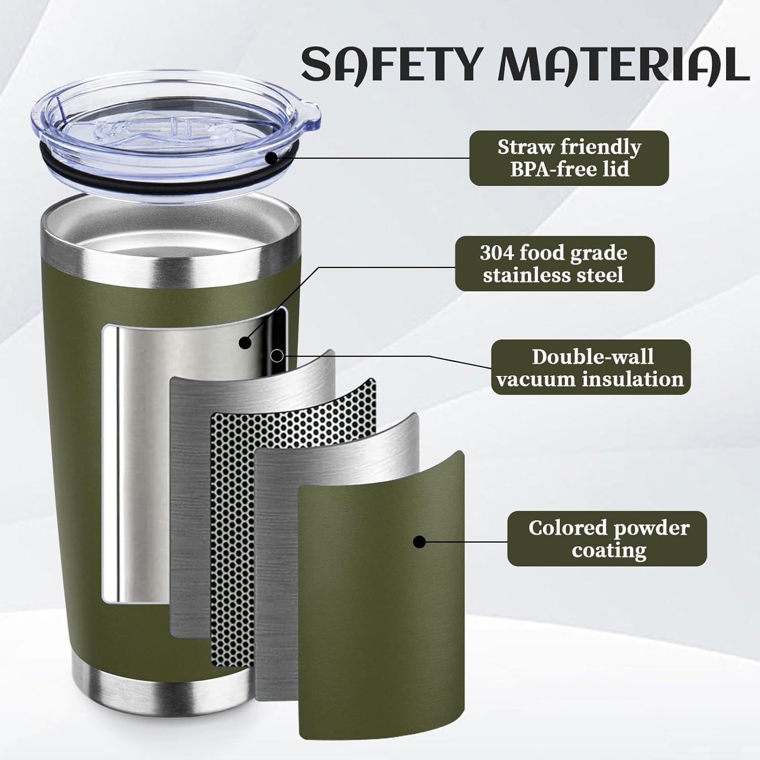 20oz Tumbler Bulk with Lid and Straw, Stainless Steel Double Wall Vacuum Insulated Travel Mug, Powder Coated Coffee Cups for Hot and Cold Drinks,Funny Gifts for Women Men(Navy Green,4)