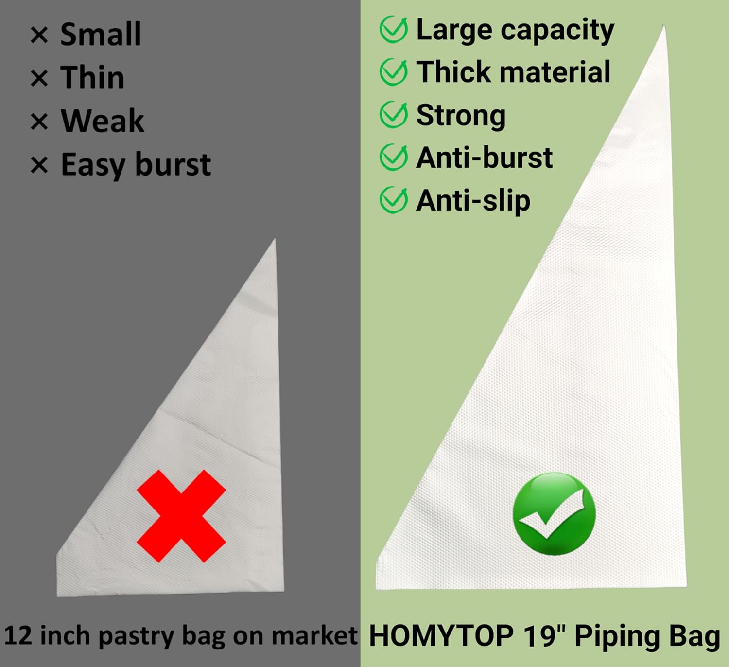 - Large Size and Capacity: Our 19 inch extra large piping bags boast a remarkable 1 liter volume, larger than most 12 and 16 inch piping bags in the market. Bid farewell to frequent bag changes and embrace uninterrupted creativity.