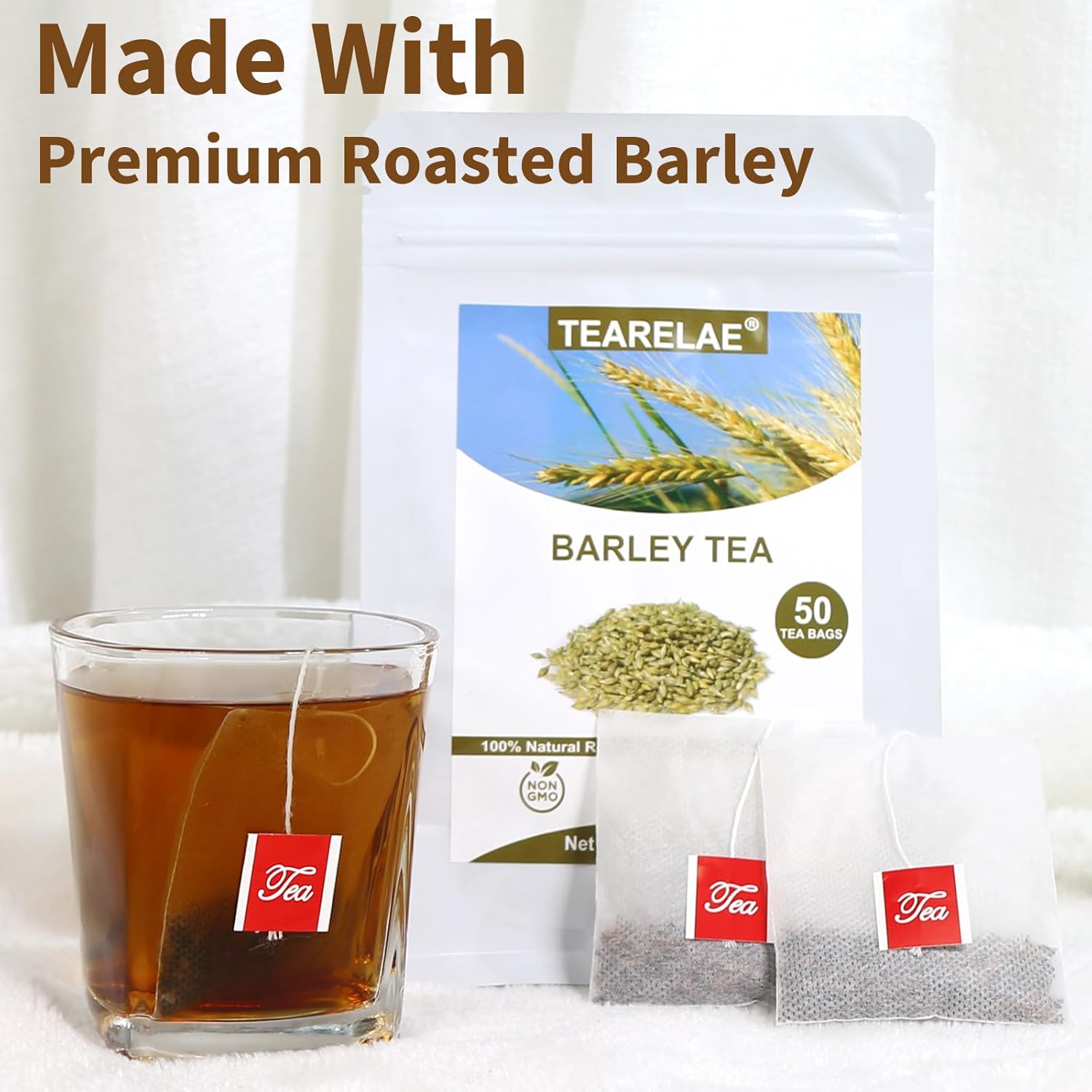 TEARELAE - Barley Bags - 4g x 50 Count - 100% Pure Natural Roated Barley Grains Herbal Tea - Mugicha - Non-GMO - Caffeine-free - Gently Sweet & Mellow
