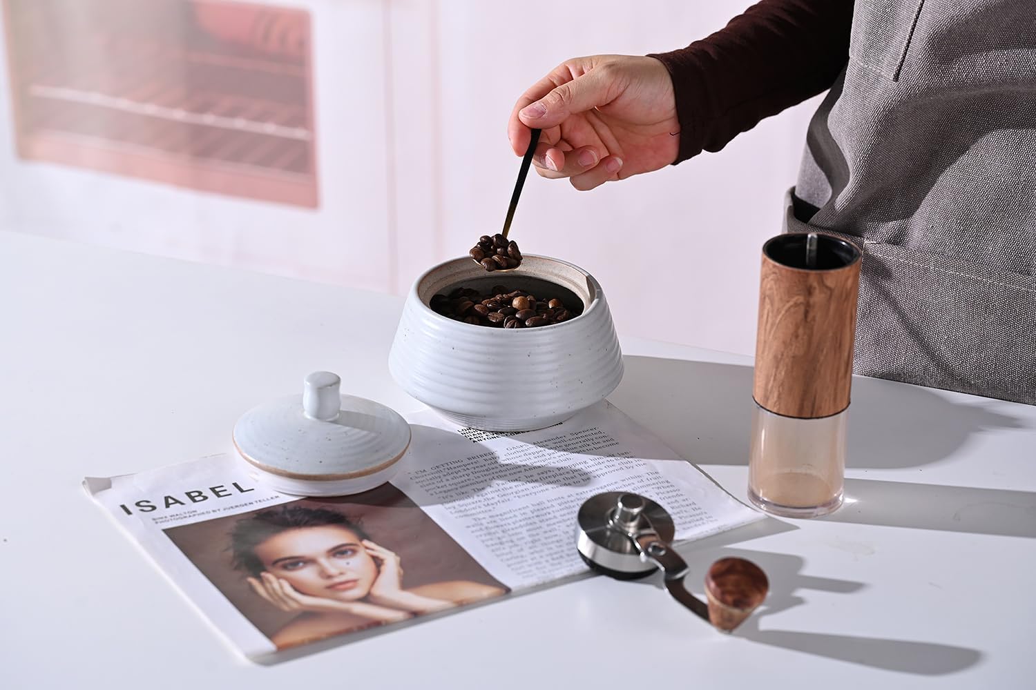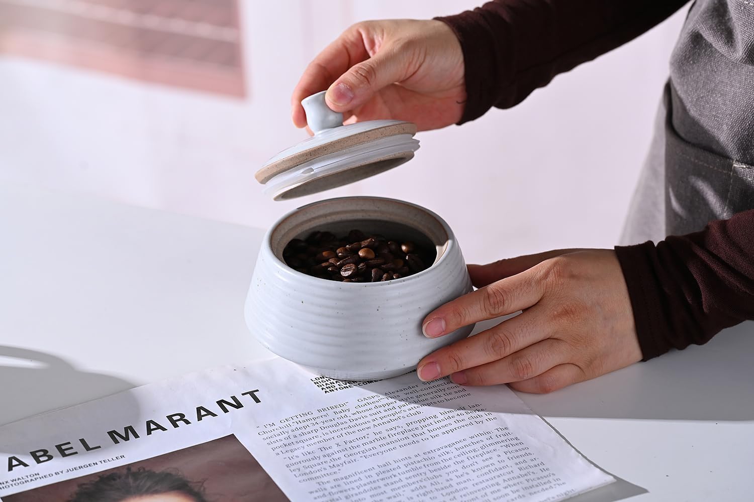 - [High-Quality Material] Made of high quality ceramic jar and BPA-free silicone airtight lid. Health and non-toxic, creating an airtight environment to keep contents dry, keep ingredients fresh and safe. Delightful, quality hermetically sealed round storage tin.Durable and easy to clean.
