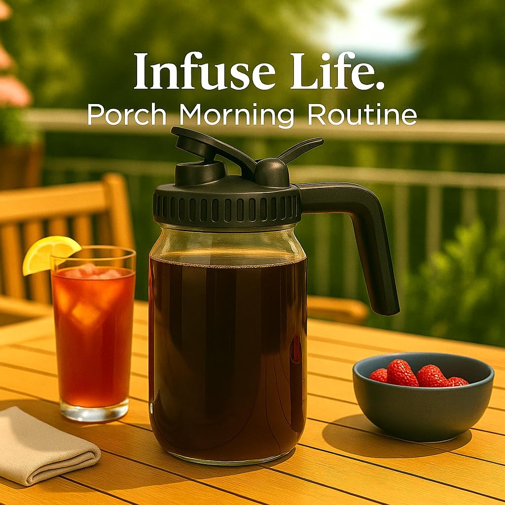 - This versatile mason jar pitcher is your go-to solution for both cold brew coffee and fruit-infused water. Switch between the fine stainless steel filter for smooth coffee or the wide infuser basket for refreshing fruit blends—perfect for any season and lifestyle.