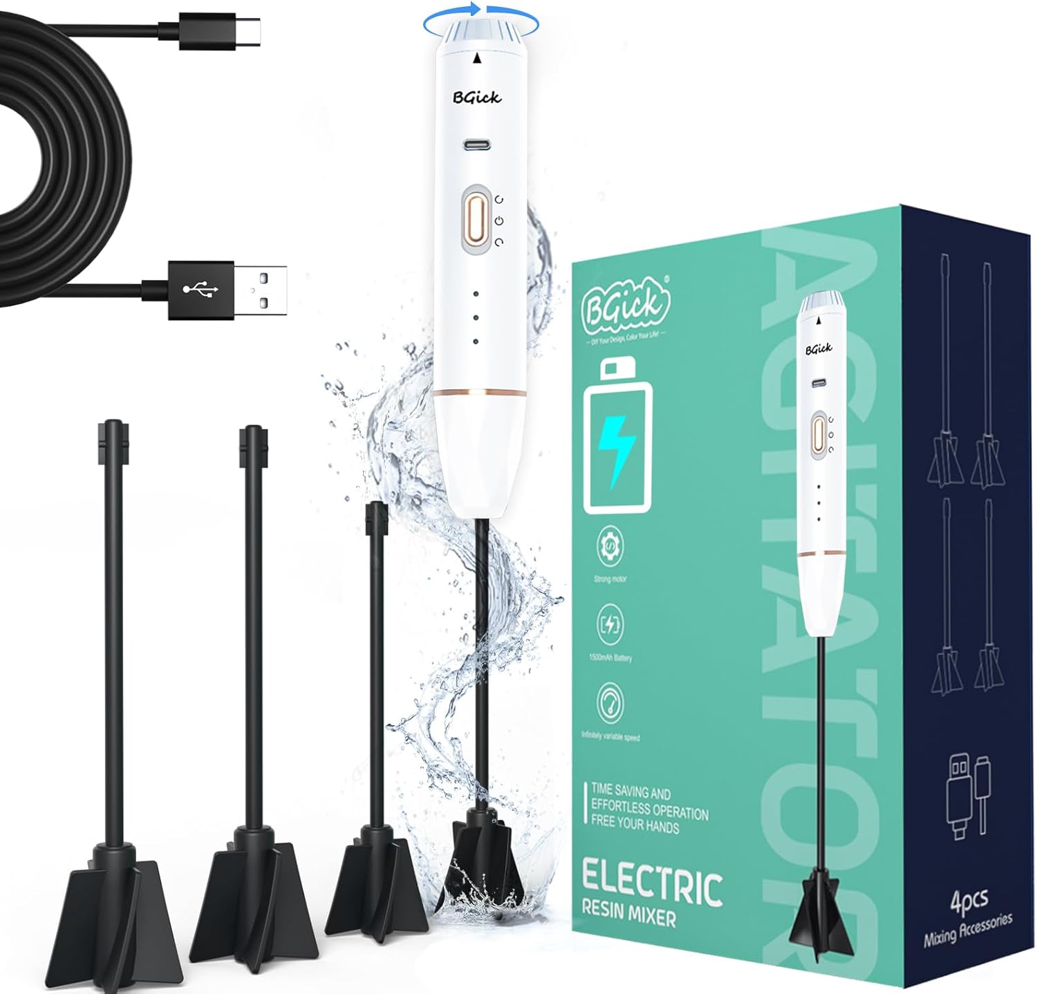 - 【What You Will Get】1x Rechargeable Electric Resin Mixer, 4 epoxy resin stirring paddles (2*small 2*large), 1x USB Type-C Charging Cable, 1x Instruction Manual.
