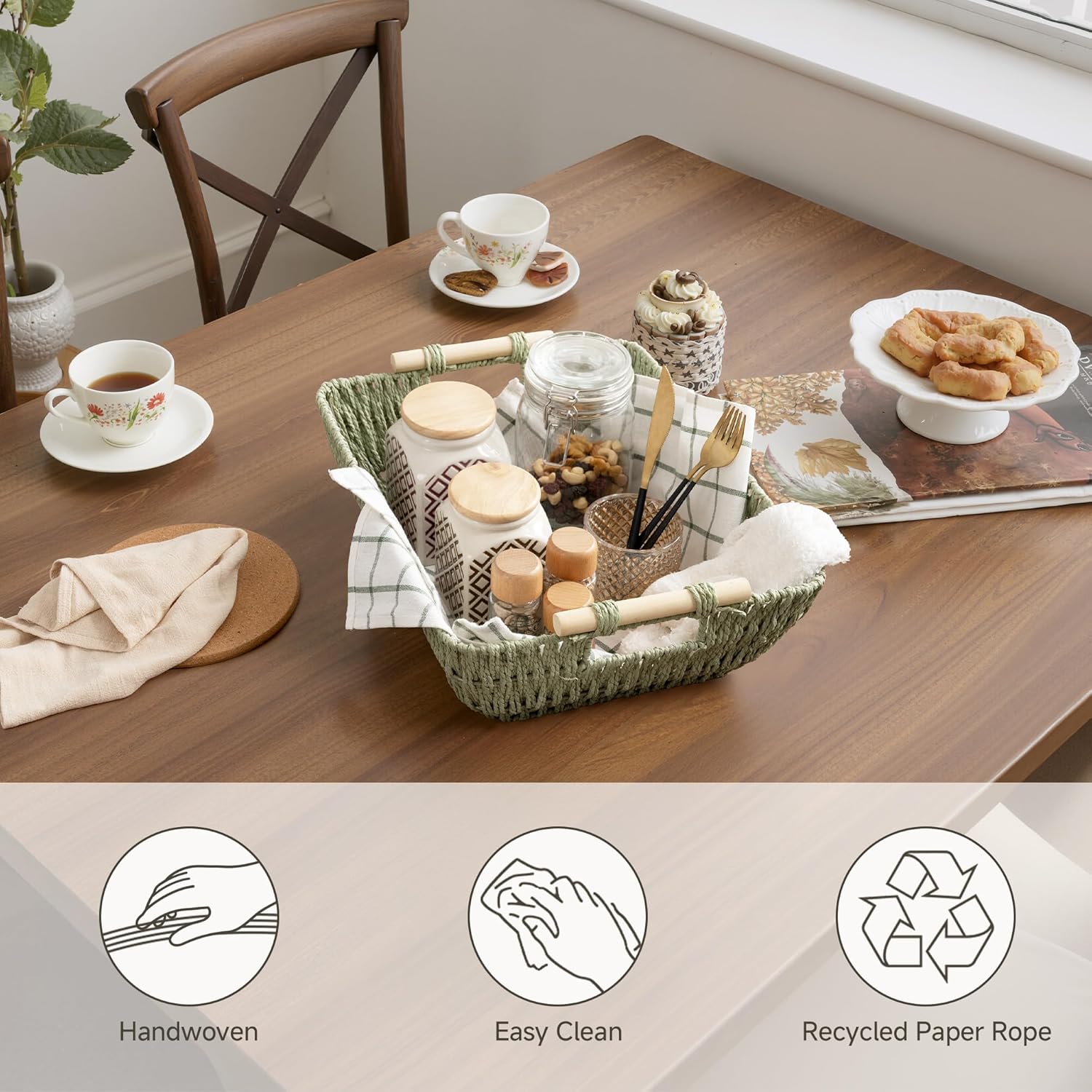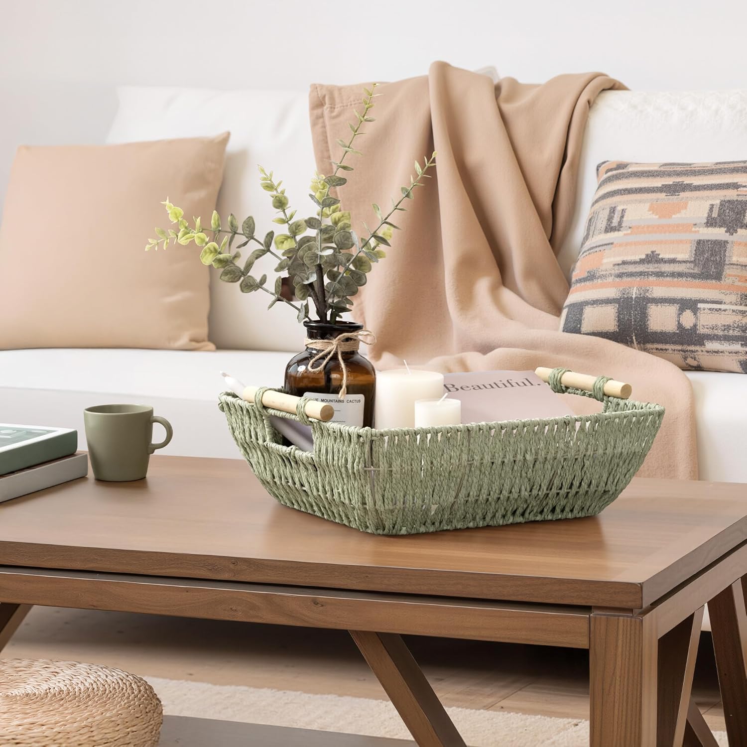 StorageWorks Extra Large Wicker Storage Basket for Organizing with Wooden Handles, Toilet Paper Baskets for Bathroom, Bosana Green, 2-Pack
