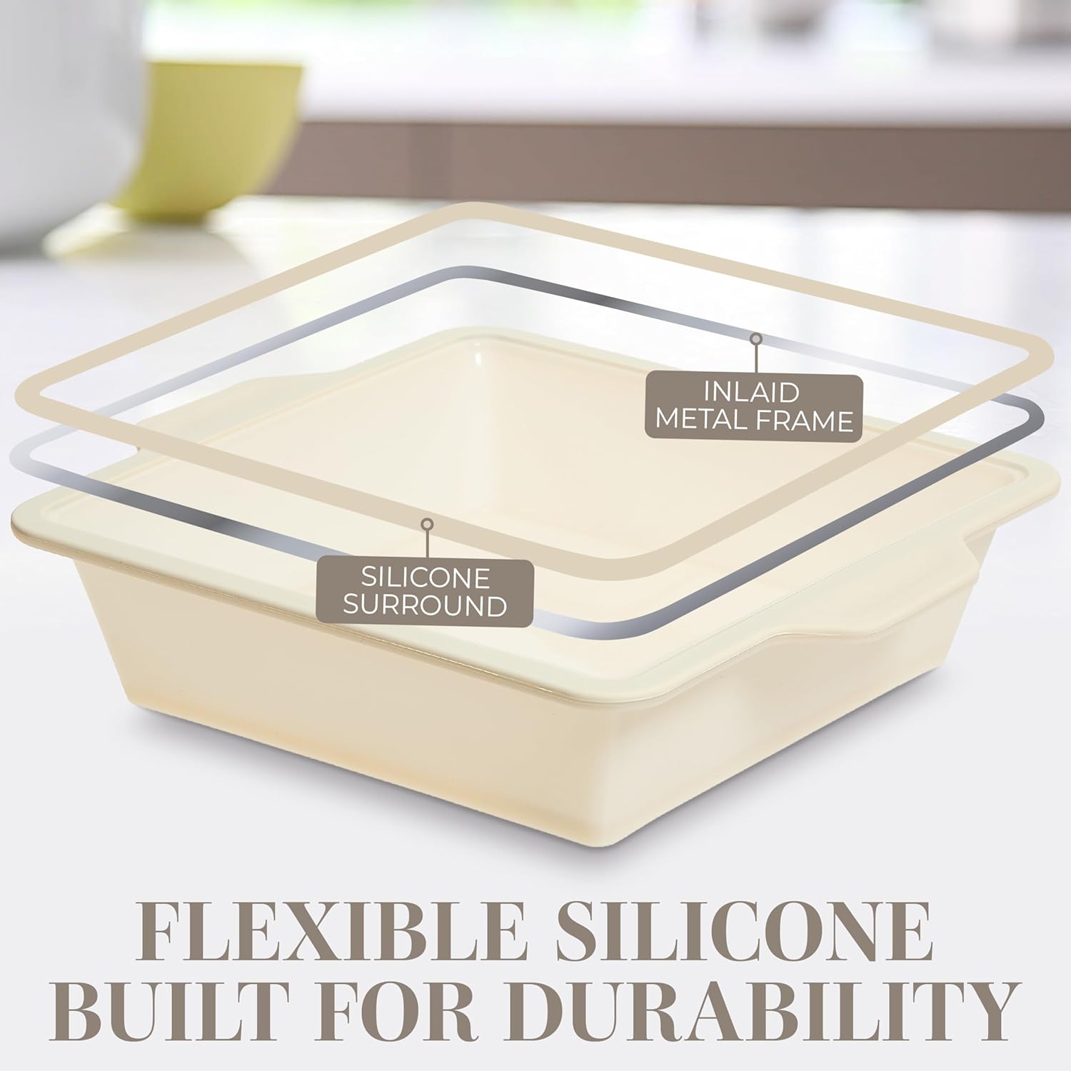 - Sturdy Metal Frame: Experience the durability of our silicone bakeware sets with a sturdy metal frame. These silicone baking pans for oven won't warp or bend, ensuring a reliable bake every time.