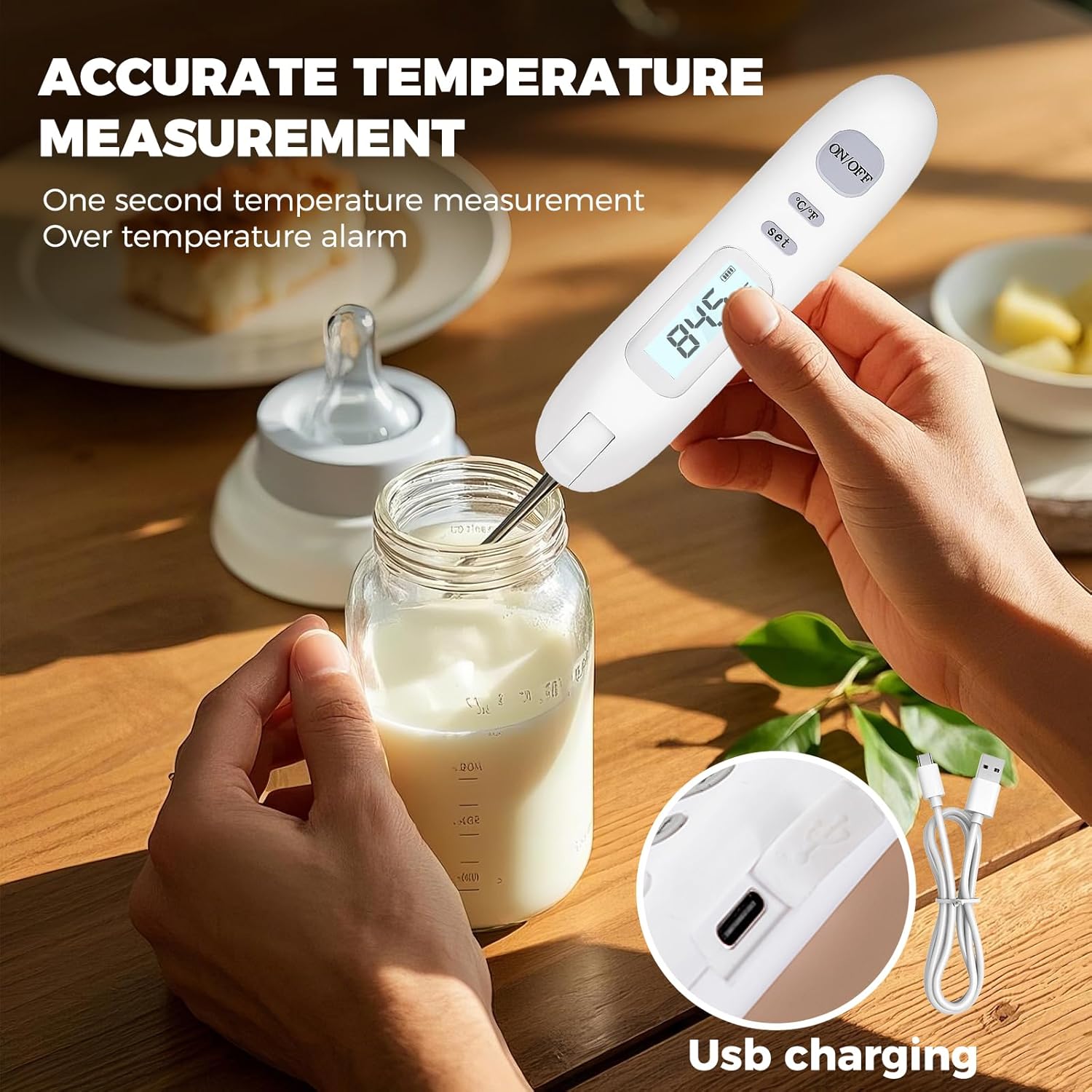 - Durable & Safe Material | This cooking thermometer is made with a food-grade 304 stainless steel probe and a high-quality ABS body. It comes with a Type-C charging cable, and one charge lasts for one month. After use, you can rinse the probe directly under the faucet and wipe the body with a damp towel to keep it hygienic. (WARNING: Do not immerse the food thermometer in water, put it in the dishwasher, use an overpowered charger, or give it to children to play with.)
