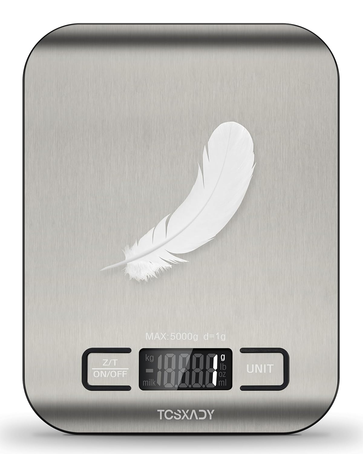 - 【Versatile Measurement Mastery】Tcsxady food scale supports 6 units (g/kg/lb/oz/ml/milk ml) for baking, meal prep, or liquid tracking. Optimized for recipes requiring precise conversions, it replaces guesswork with quick-tap unit switching. Ideal for food scales for kitchen enthusiasts prioritizing flexibility.