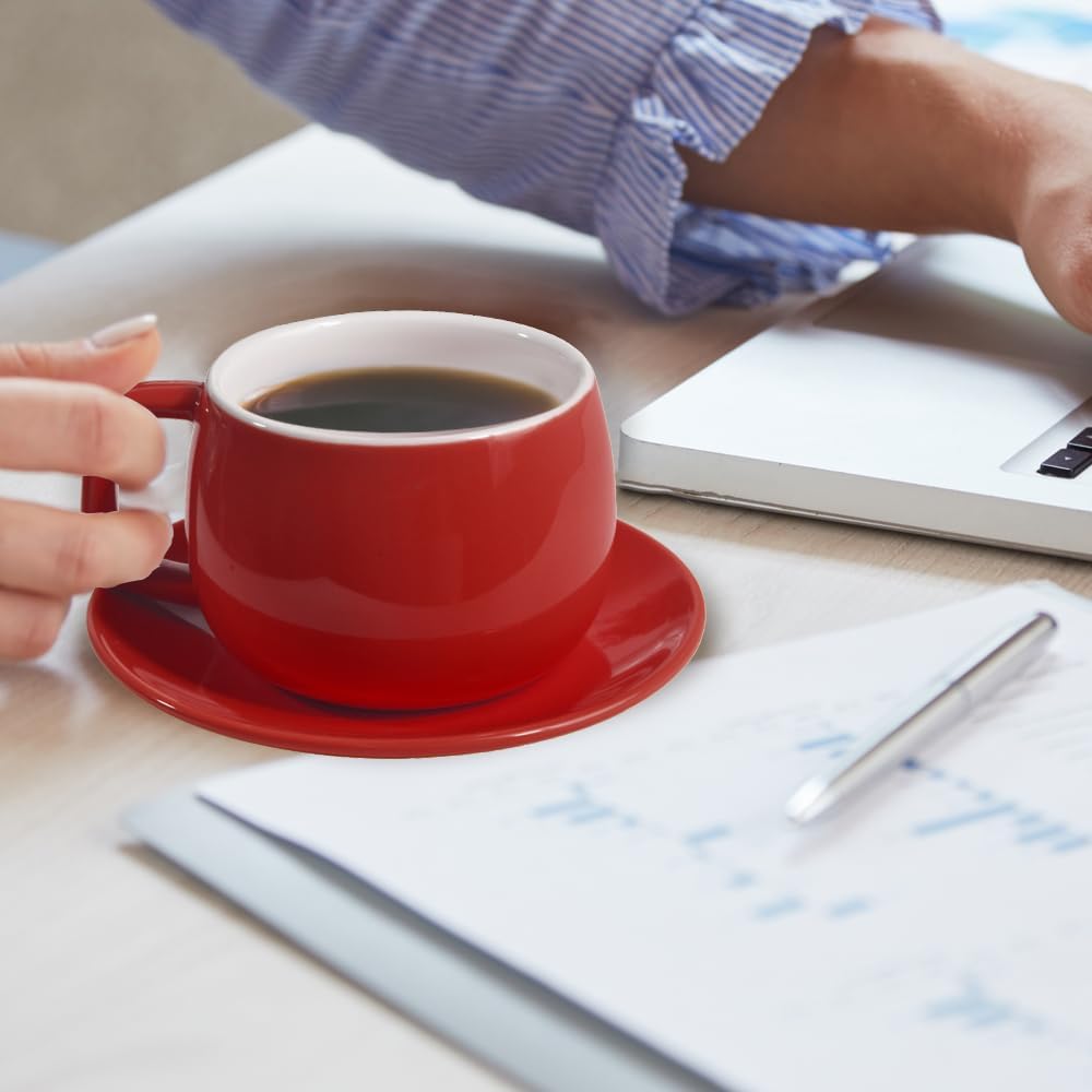 Porcelain Coffee Cup with Saucer 270ml/9oz, Minimalist Design, Perfect for Latte, Cappuccino, and Tea, Red