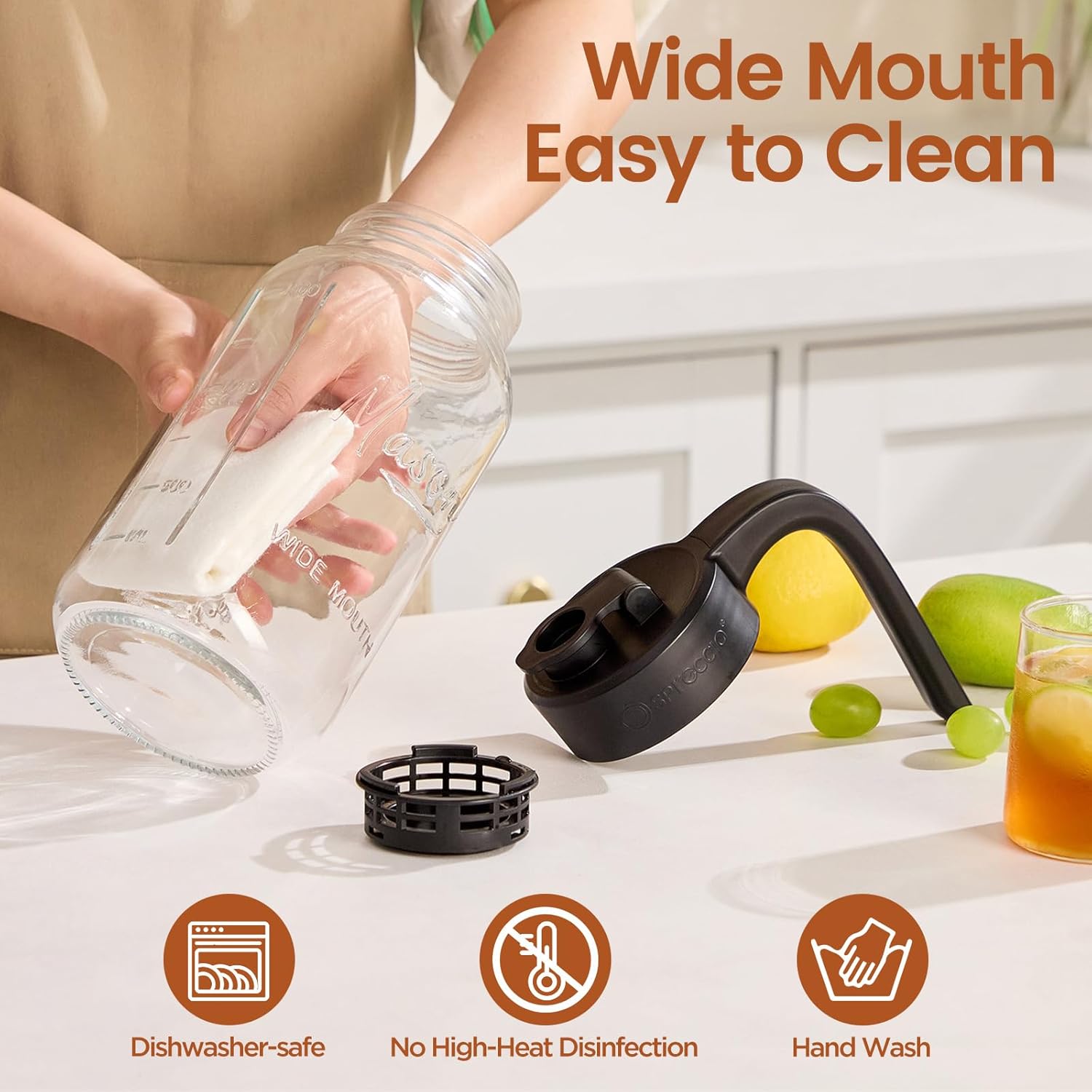 - Easy to Clean & Dishwasher Safe: The sun tea glass jar for outside is perfect for iced tea, sun tea, and lemonade, this pitchers for drinks features a removable filter for quick cleaning—just unscrew and hand-wash. The wide-mouth design makes it easy to clean by hand or dishwasher, ensuring it’s always ready to use.