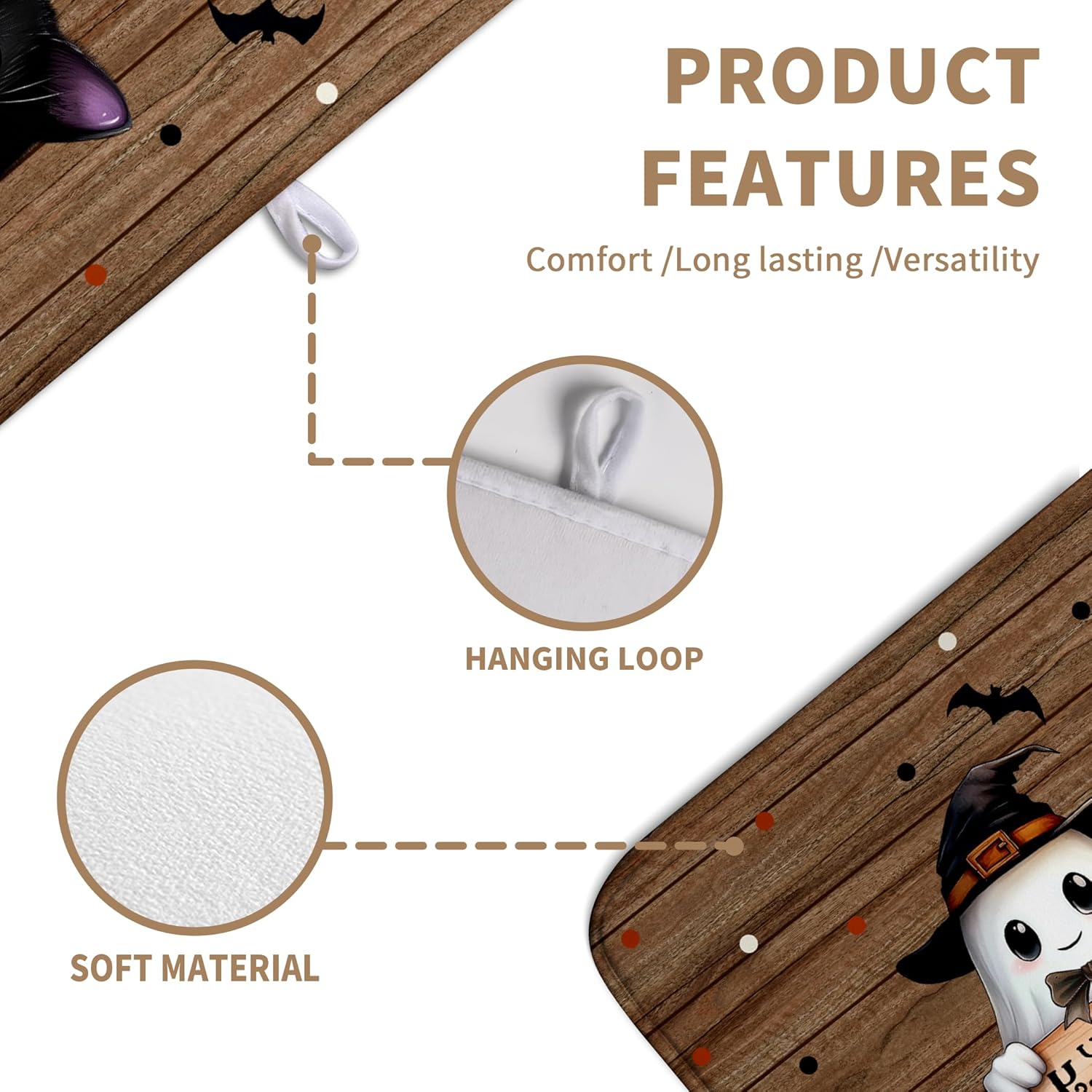 - [Space Saving]: This Spooky dish drying mat lightweight absorbent halloween pumpkin kitchen mat has a webbing lanyard in the middle of the horizontal side for hanging, and Halloween Spooky Ghost dish drying matt kitchen counter can also be folded and thrown into a drawer or stuffed elsewhere.