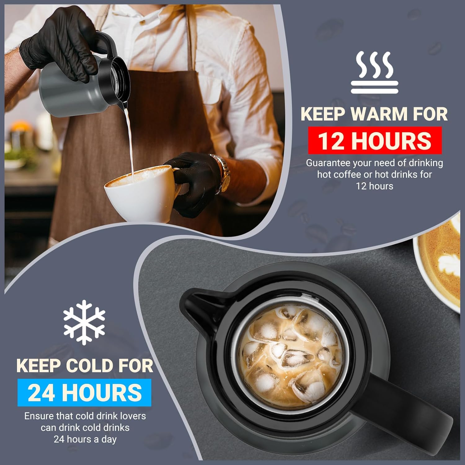 - Double-wall Vacuum Insulation: Perfect for hot water,hot cocoa, milk, or coffee, this double-wall vacuum insulated coffee carafe features advanced insulation to keep your drinks at the ideal temperature for hours