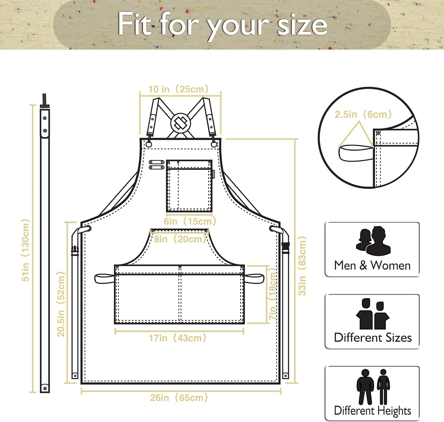 Work Aprons with Multiple Pockets, Waterproof Canvas for Cooking, Painting, Crafting, Gardening, Sizes M to XXL, Colorful Spots