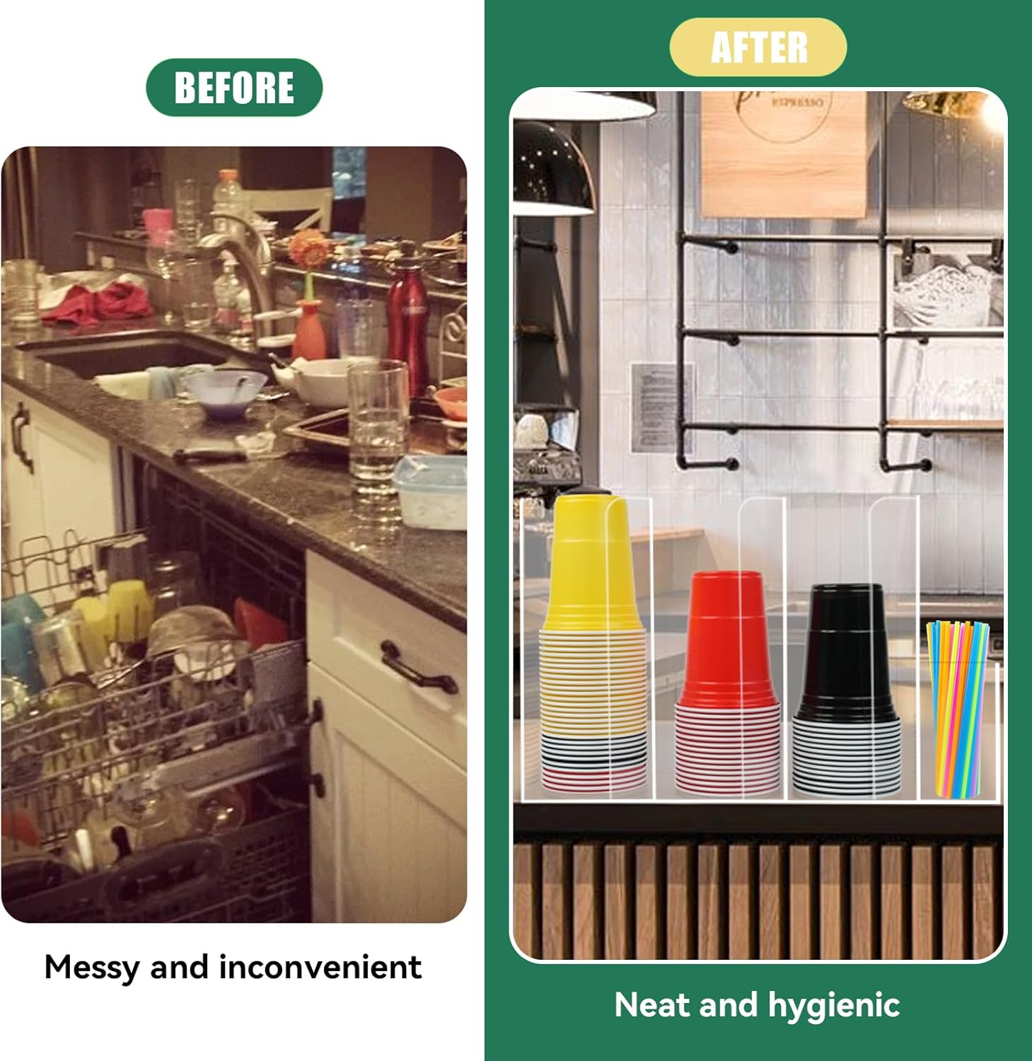 - 【Versatile Multi-Use Storage】Holds paper cups, plastic cups, coffee cups, lids, straws, and more! Perfect for restaurants, lounges, coffee bars, buffets, home kitchens, and countertops – the ultimate cup and lid organizer for any space