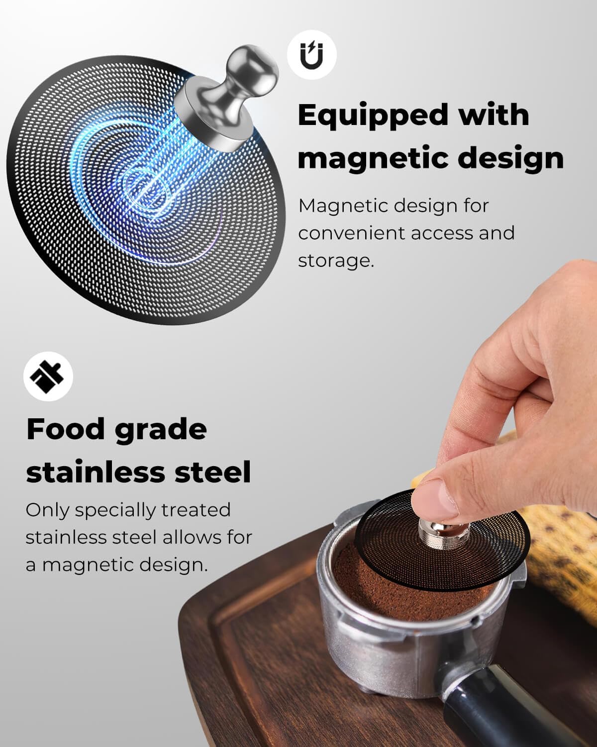 - CONVENIENT TO PICK UP: Unlike other stainless steel options, this puck screen is treated and works seamlessly with the included—making it easy to access and store