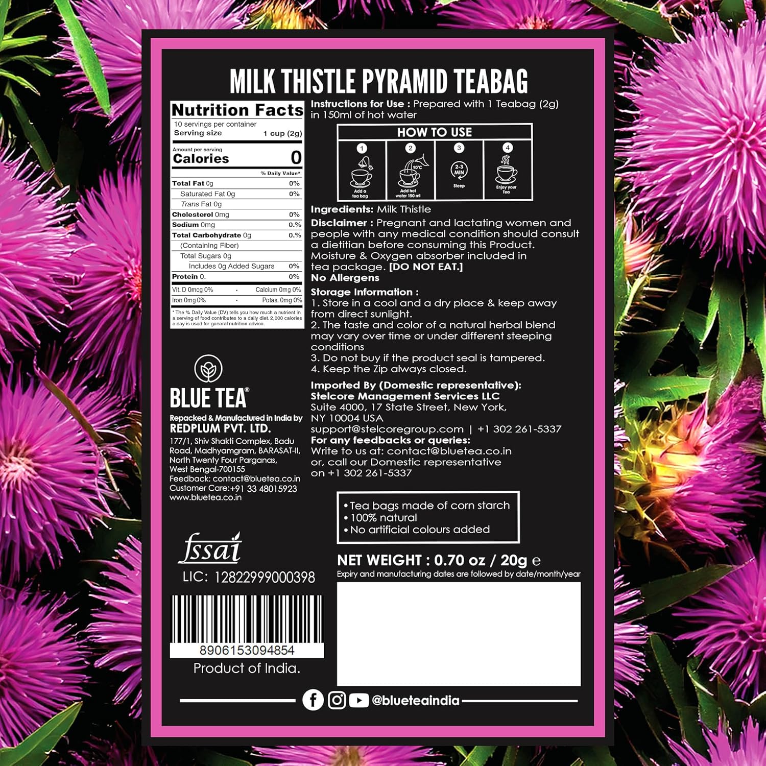 BLUE TEA - Milk Thistle Tea - 10 Count - Pyramid Plant Based Tea Bag | Liver Cleaning and Immune Support | Milk Thistle Seeds - Caffeine Free - Herbal Tea - Non Bitter | Zipper Pack