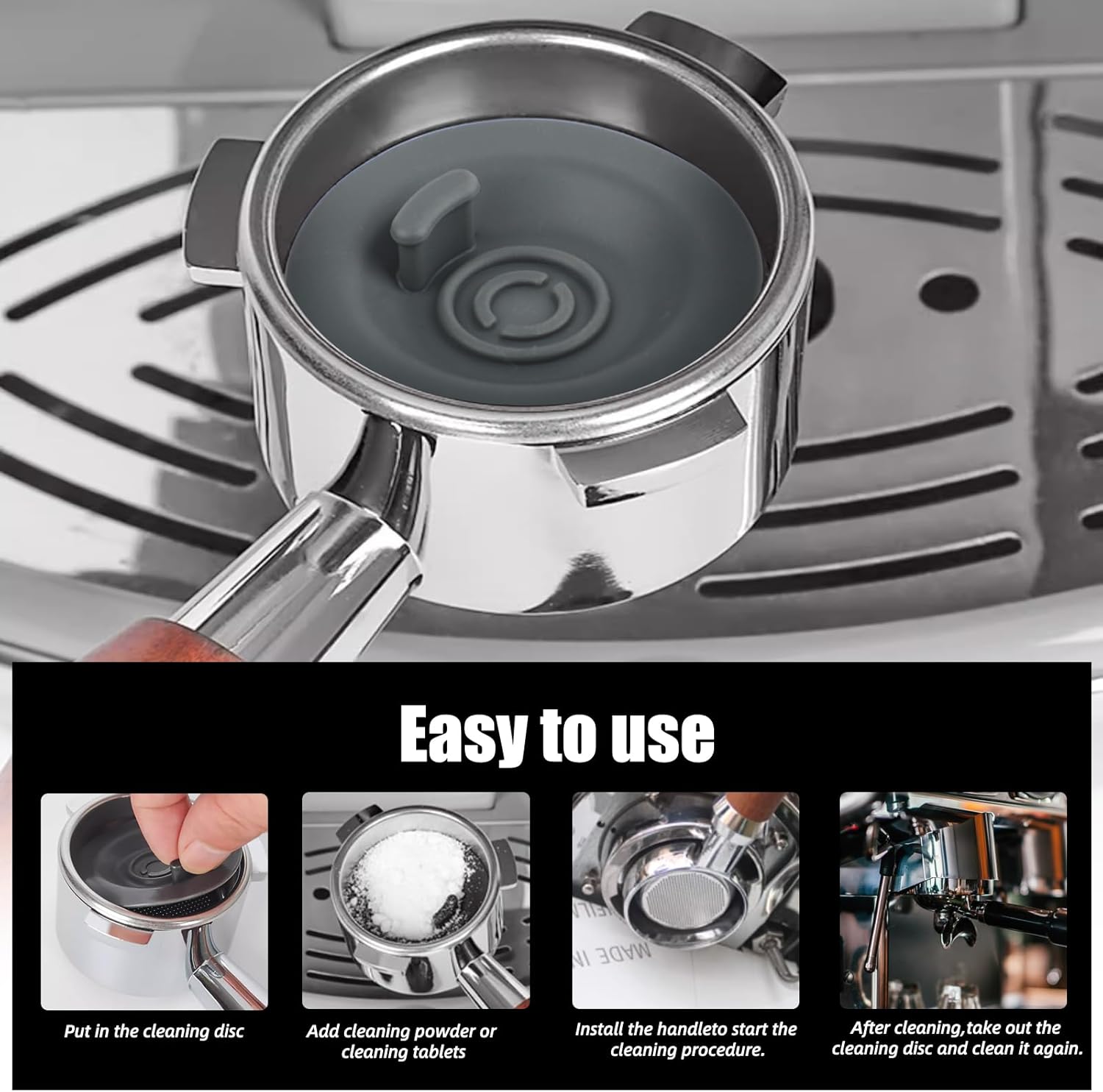 - Easy to Use: Simply place the disc in the portafilter and run a cleaning cycle a few times, following the illustrated instructions for effortless maintenance.