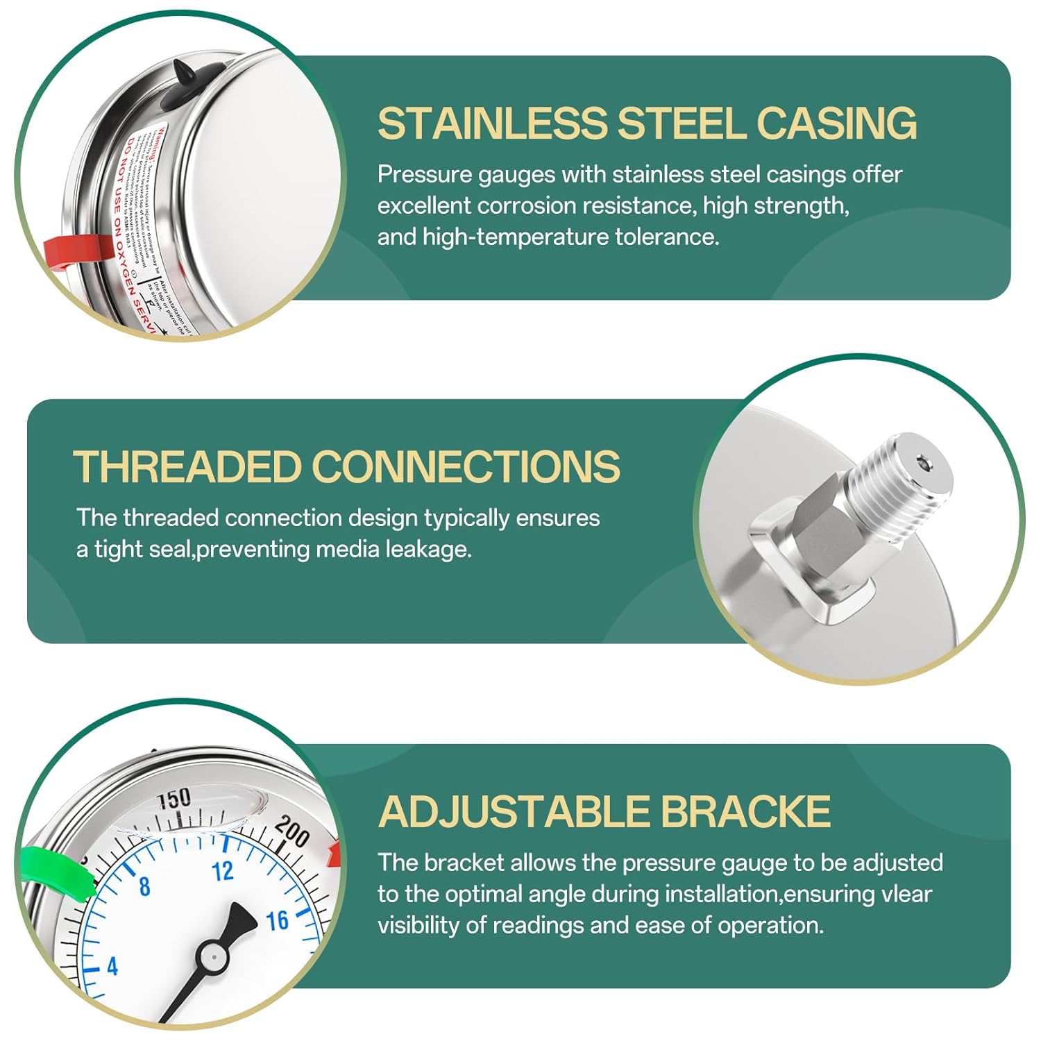 - [PRODUCT NAME] Stainless Steel Liquid Filled Pressure Gauge