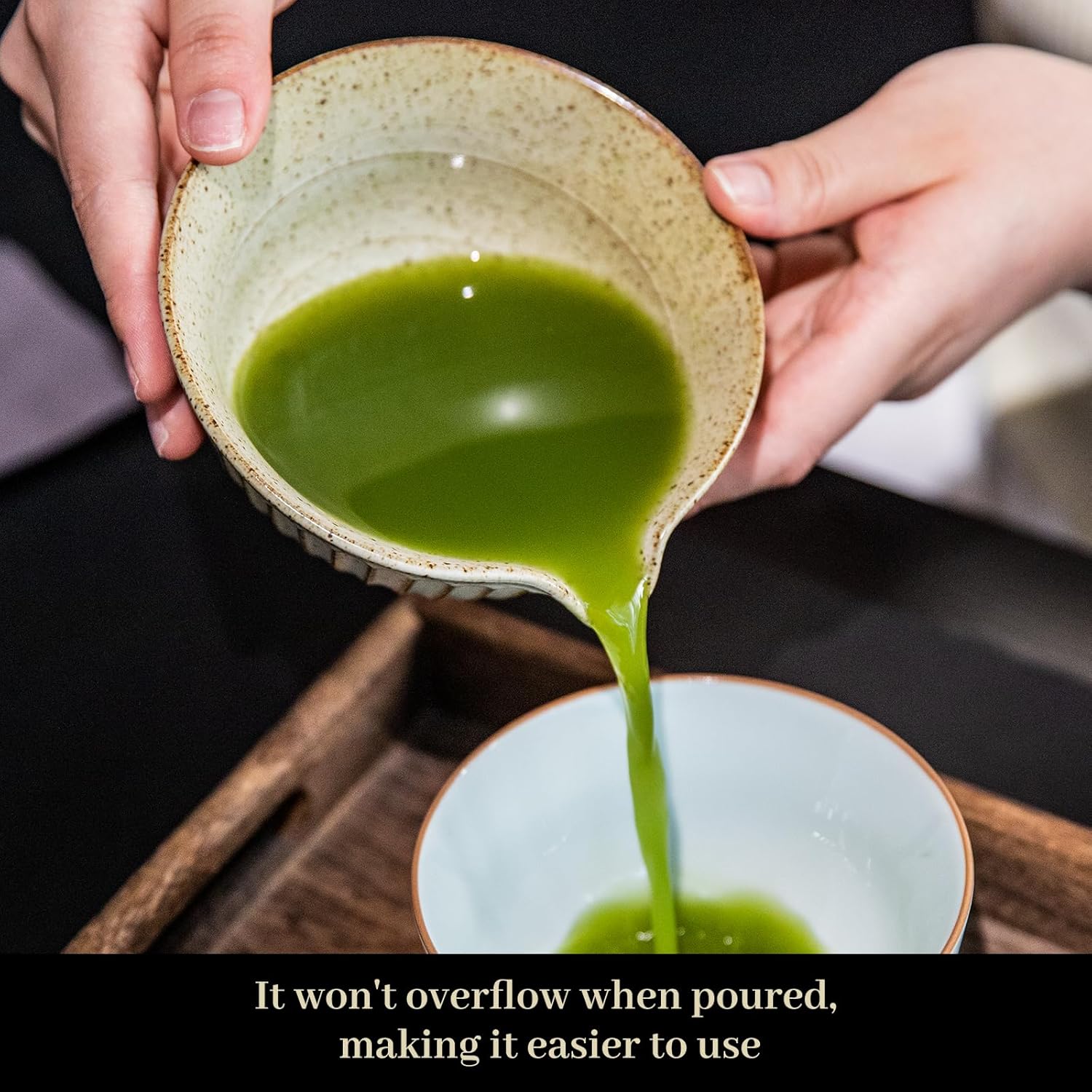 - Matte Matcha Bowl With Spout: The matcha bowl is made of BPA-free, lead-free food-grade ceramic. The smooth glazed inner wall is stain-resistant and easy to clean, leaving no tea stains. The unique deflector design makes it easier to pour and prevents spillage. The meticulously polished bowl body is both aesthetically pleasing and practical, allowing you to enjoy a safe and pleasant matcha time every time you use it.