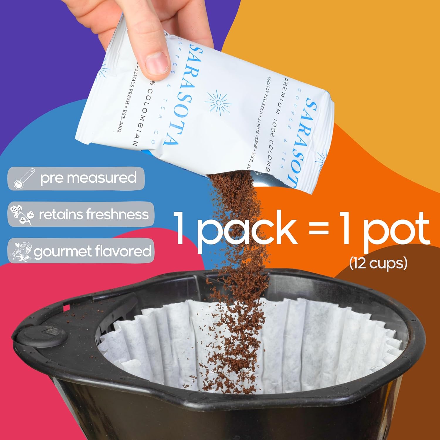 Sarasota Bulk Coffee Packs Flavored Ground Packets | Flavored Roast Variety Set | Gourmet Assorted Gift Sampler | Low Acid Pouches for 12 Cup Coffee Maker | 1.75 Oz Bags, 100 Count