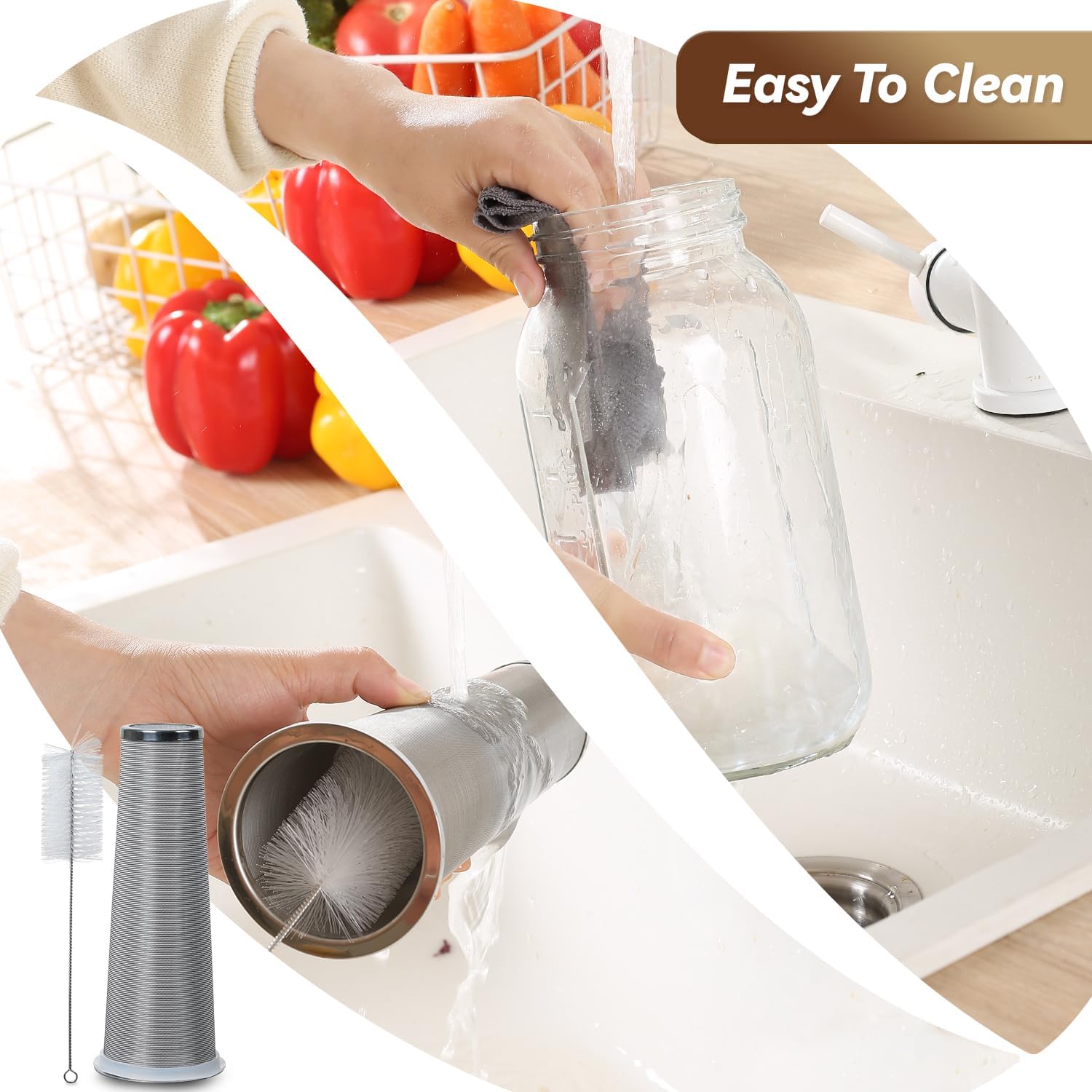 Cold Brew Coffee Maker Pitcher 64-ounce Glass Wide Mouth Mason Jar with Stainless Steel Filter and Pour Spout Handle Lid (Grey, 64Ounce)