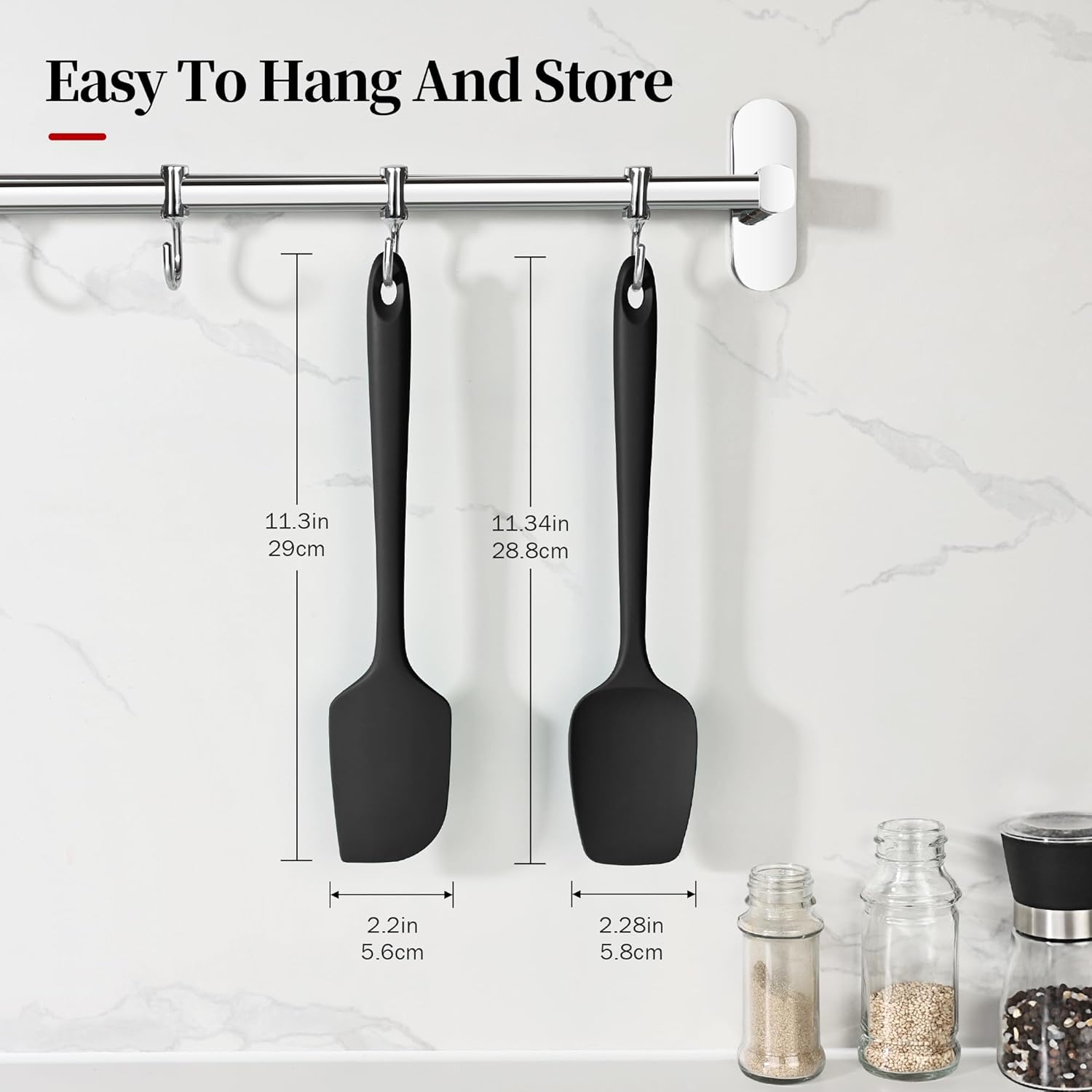 - [Seamless Design & Dishwasher Safe & Easy Storage] This baking spatula set's smooth surface keeps food from sticking, so messy ingredients like caramel or melted cheese wash off easily. Made as semless construction, there are no hidden spots for food to get stuck. It's tough enough for daily dishwasher use, and the handy loop makes storage simple and keeps your kitchen tidy. Whether you're scraping peanut butter or mixing batter, cleanup takes seconds—just rinse and go.