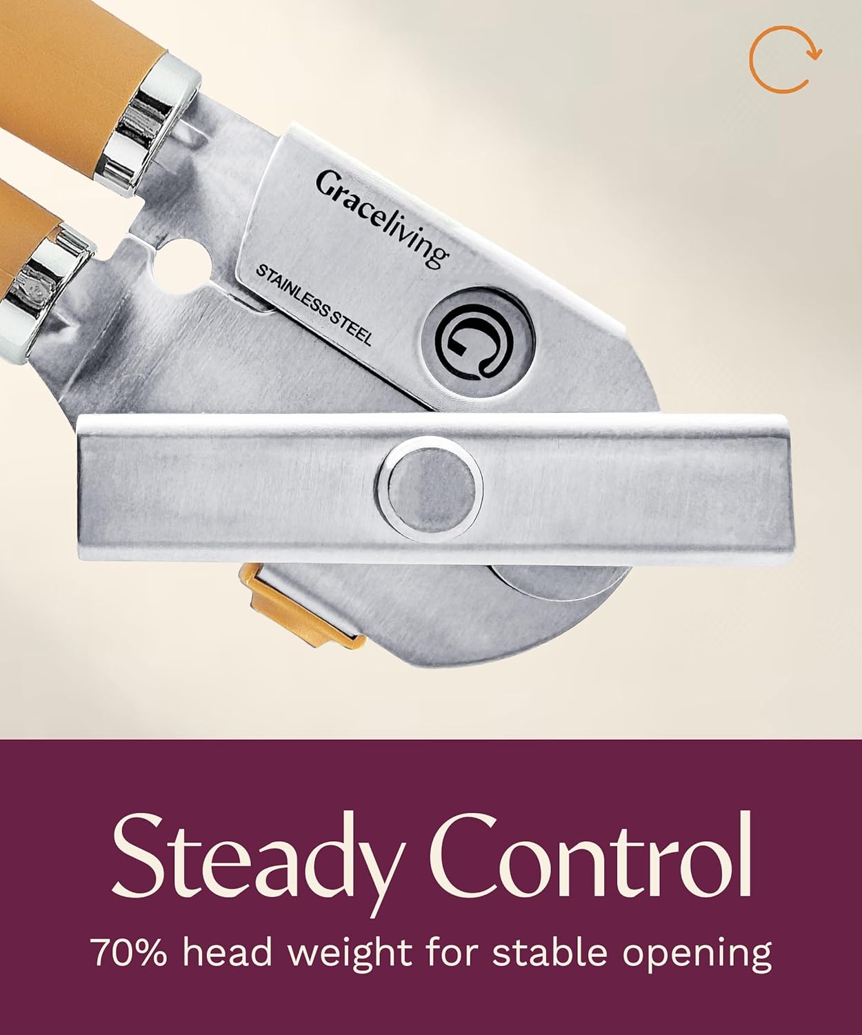 - 【Effortless Easy-Open Can Opener Manual with Oversized Knob, Soft-Touch Ergonomic Non-Slip Handle & Built-In Bottle Opener】 The unbreakable oversized knob rotates smoothly through a full 360° for uninterrupted turning, and combined with the soft-touch, ergonomic, non-slip handle ensures effortless, stable operation—ideal for those seeking easy-to-use can openers for seniors or anyone who values comfort and control. This versatile kitchen gadget also features a built-in bottle opener for multifunctional use.