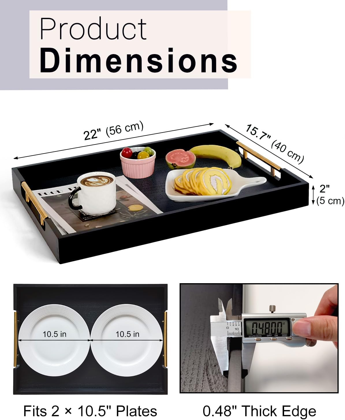 - 22 INCH OTTOMAN TRAY – This extra-large serving tray (22" x 15.7" x 2") is perfect for serving food, organizing drinks, displaying décor, or using as a charcuterie board. Adds both style and function to your home.