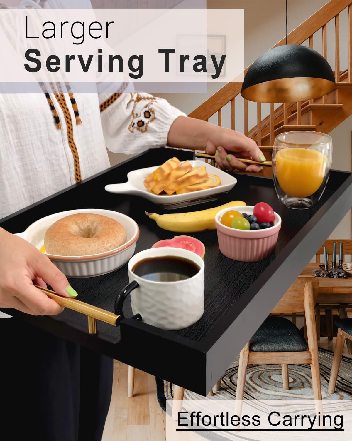 - DURABLE METAL HANDLES – Equipped with golden metal handles that offer a comfortable grip, making it easy to carry—ideal for serving dishes up and down stairs.