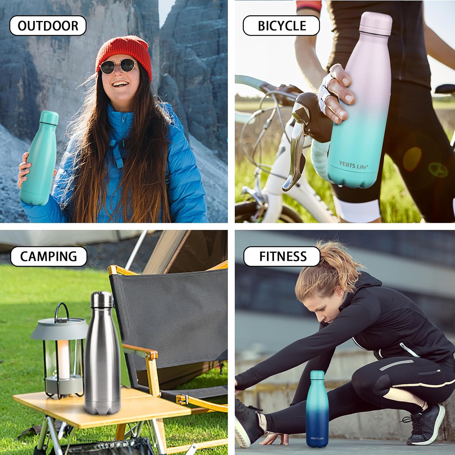- SAFE & HEALTH:YEBTS life's insulated water bottles are made from BPA-free,phthalate-free, non-toxic, high-quality 18/8 food-grade stainless steel that is strong and rust proof for unique durability.So kids can sip every sip of their favourite beverage with confidence.Children drink water every day,a healthy water bottle is very important to them.This high-quality stainless steel water bottle is definitely the best growth gift for children!
