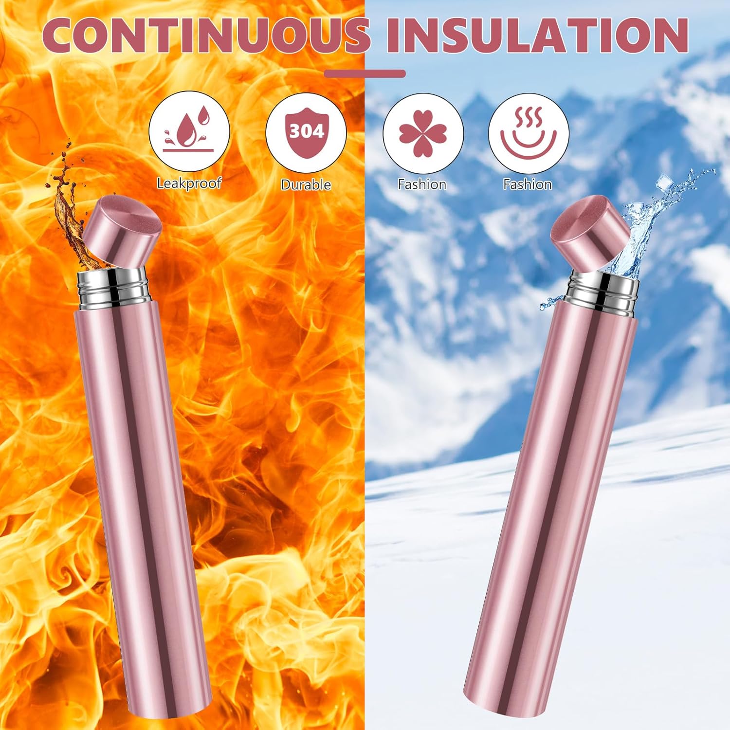 - Leak-proof design: the small vacuum insulated bottle is equipped with a spiral anti leak device; When tilted or shaken, the bottle will not leak easily, and you can carry it with confidence without worrying about messing up your bag; Its slim and unique appearance will draw everybody's attention; No matter where you take it, it will put you in the spotlight