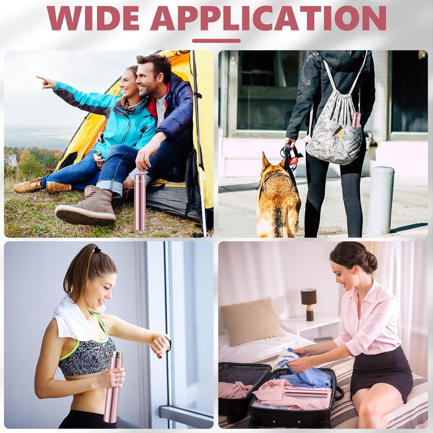 - Wide Applications: the slim water flask is wide application, you can use the purse water bottle for taking meds, having a doctor's appointment, having an emergency drink, eating outside, taking a short hike, walk, trips, going to the movie theater, bicycling, running, yoga, golf, camping, short errands, going to the gym, meetings, business trips, and more