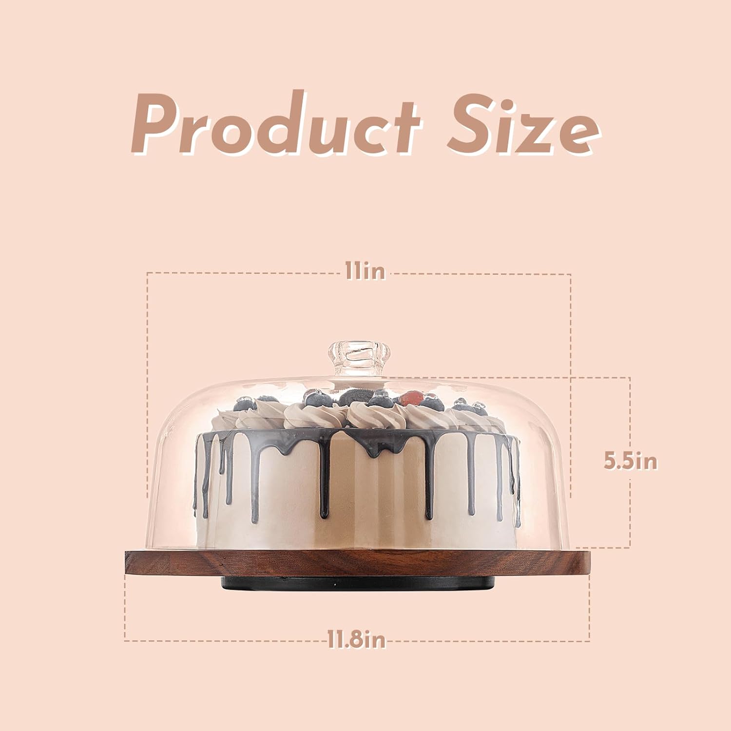 - Clear Acrylic Dome: Features a crystal-clear acrylic dome on this versatile cake stand with dome, keeping cakes, pastries, or charcuterie fresh while showcasing them beautifully. The dome fits snugly over the stand, keeping desserts fresh and presentation-ready for hours.