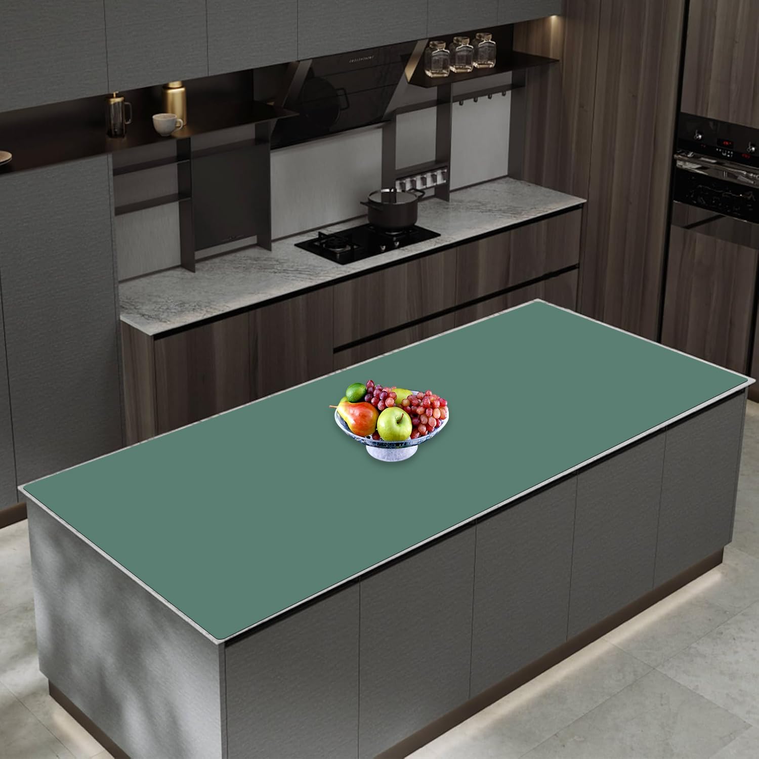 47.3''x23.6''(120cmx60cm) Extra Large Silicone Mat for Kitchen Counter, Heat Resistant Countertop Protector, Non-Slip Waterproof Kitchen Island Mat, Easy to Clean, Green