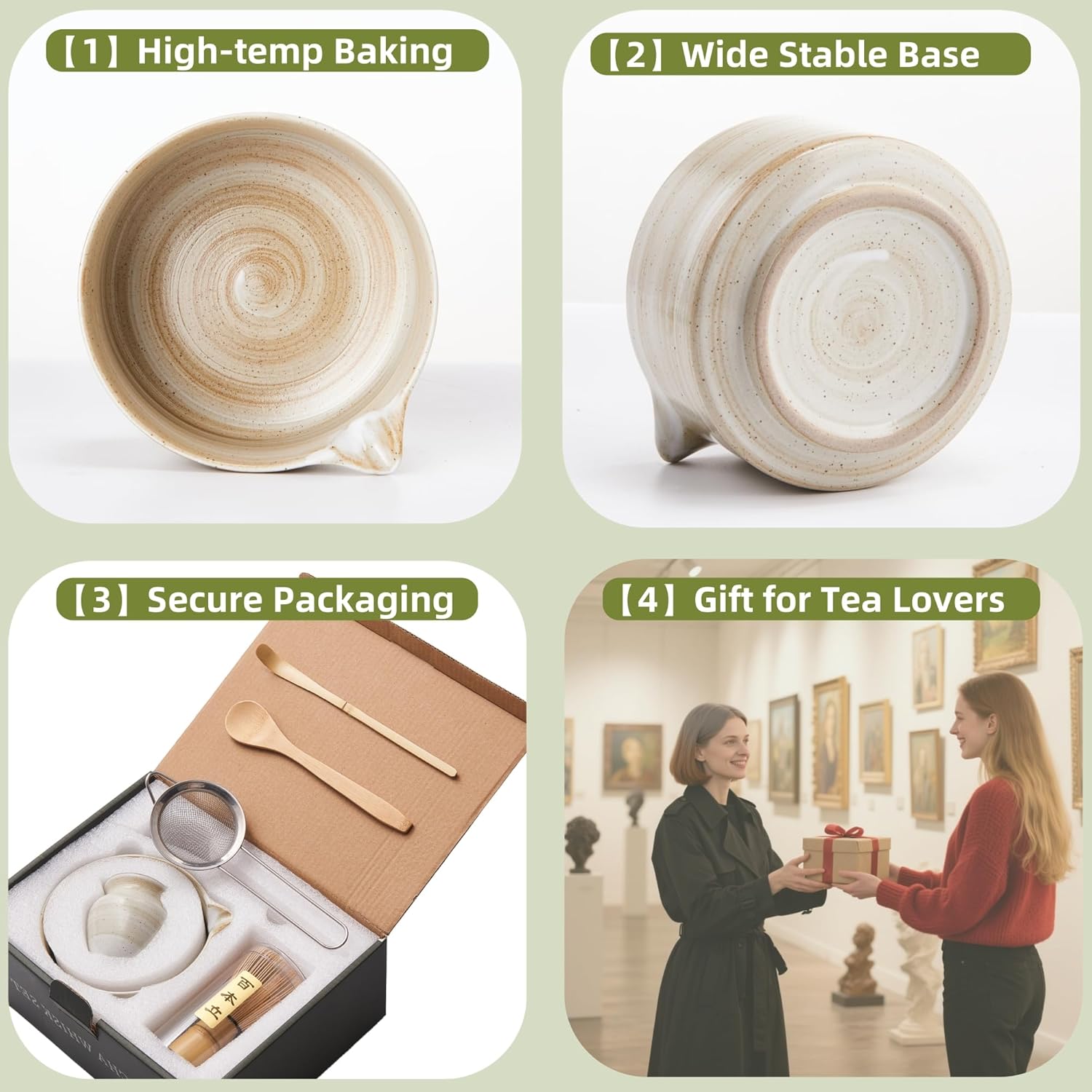 - 【Complete Matcha Set】Matcha kit set includes 6 essential tools: matcha sifter, matcha spoon, scoop, stainless steel sieve, matcha bowl, and whisk holder.Ceremonial matcha set makes preparing matcha easy and enjoyable. Whether for personal use or as a gift, it is an ideal choice.