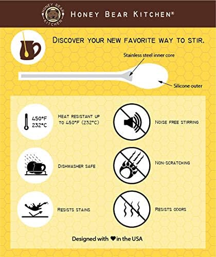 - Heat resistant up to 450 F. Silicone outside with metal core. These spoons are great for handling hot milk foam froth to oatmeal to bulletproof coffee to cold deserts like yogurt and ice cream milkshakes. These spoons can handle it.