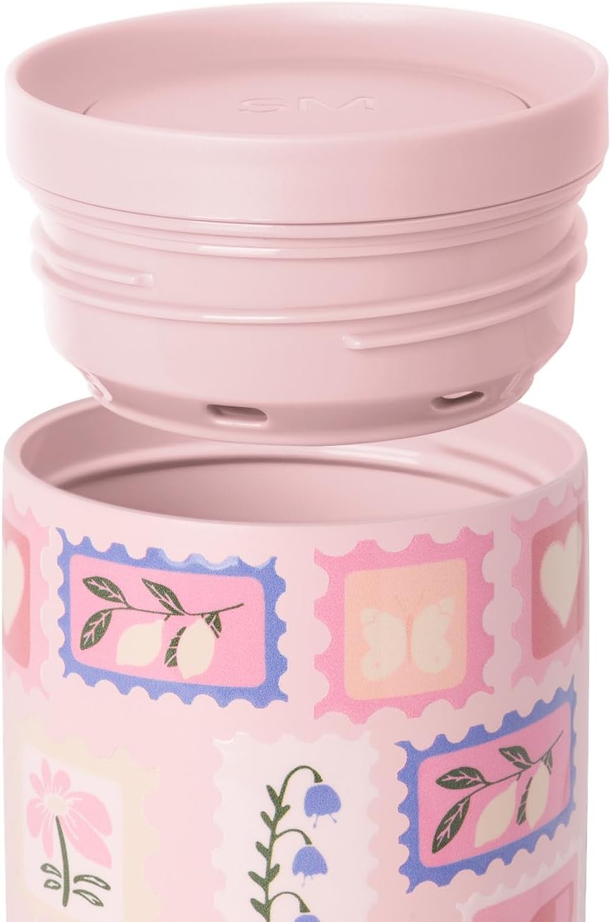 Simple Modern Mother's Day Travel Coffee Mug Tumbler with 360° Lid | Gifts for Her | Ceramic-Lined Insulated Stainless Steel Cold Brew Iced Coffee Cup | Voyager Signature | 16oz | Stamps