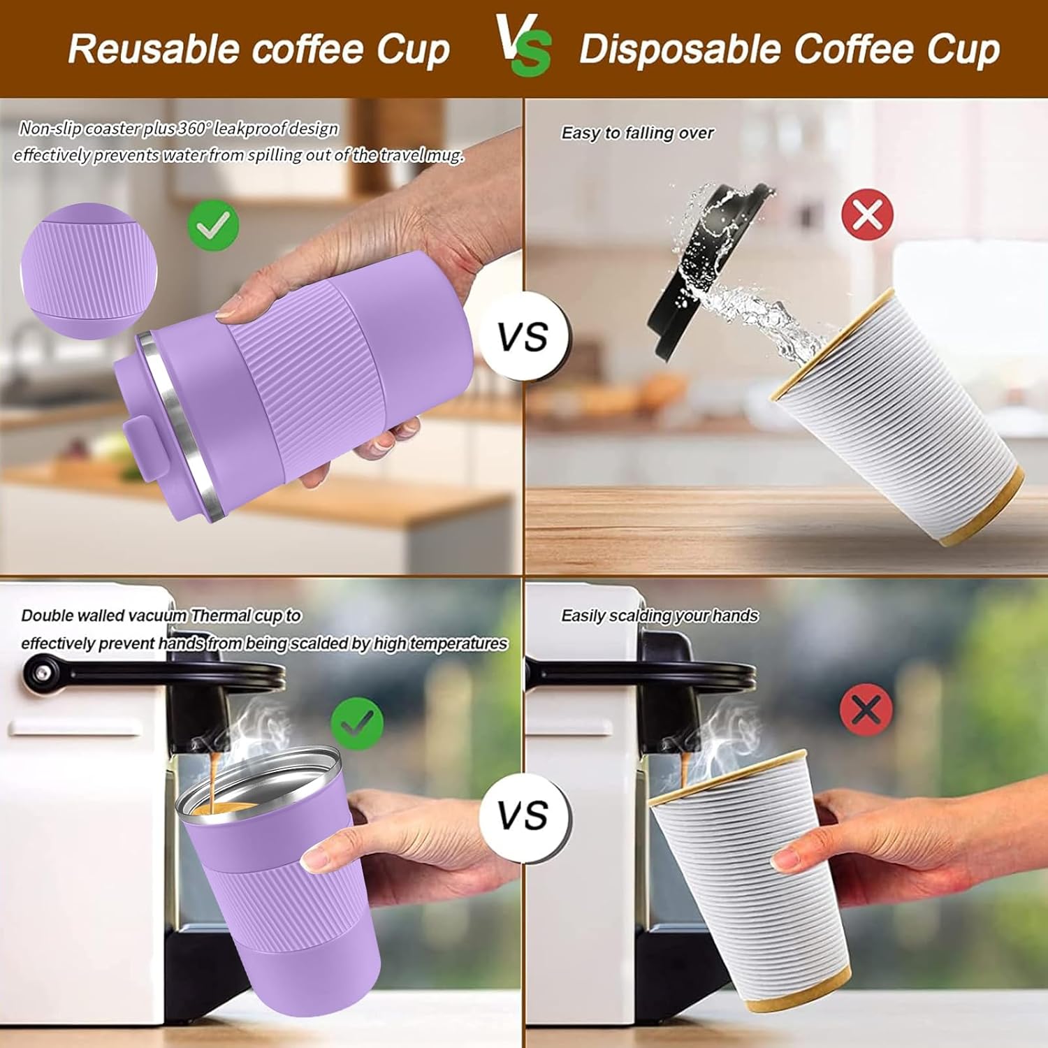 - Perfect Capacity: Our reusable coffee cup is the perfect size for your daily coffee needs. With a 17oz capacity, it's not too big or too small - just the right amount to keep you energized throughout the day. The small and beautiful design makes it easy to carry with you wherever you go, whether you're commuting to work or going on a road trip. It also fits most car cup holders and coffee makers.
