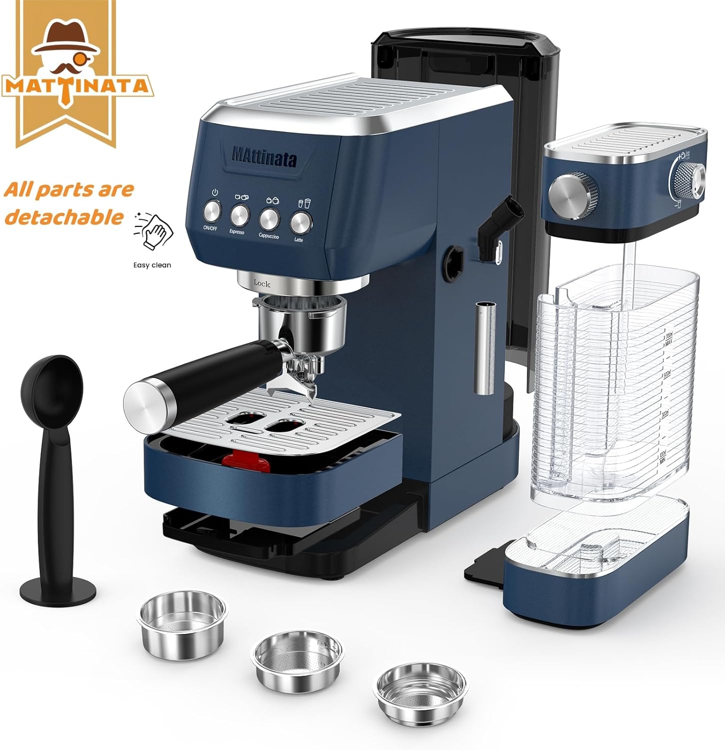 Cappuccino Machine 20 Bar, Professional Espresso Machines for Home and Office with Automatic Milk Frothering System, Barista Compact Latte Maker for Coffee Lovers, Stainless Steel-Blue