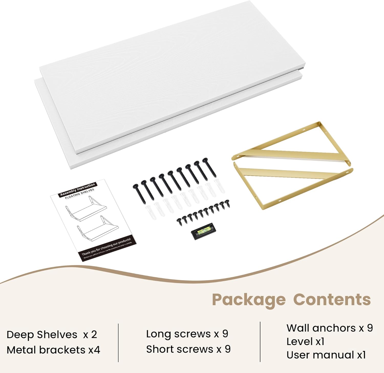 - Easy to assemble: Easy to install in minutes with the installation manual. In addition, when you mount our deep floating shelves firmly on the wall, they can hold up to 55 lbs of weight.
