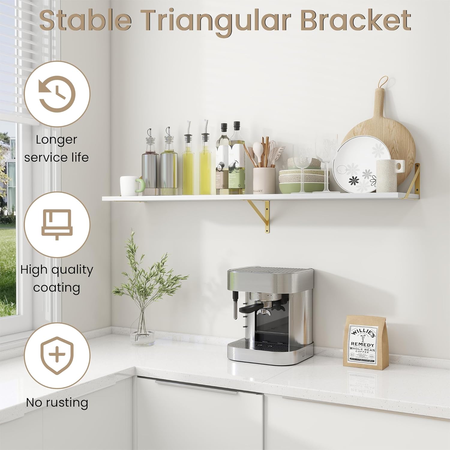 Floating Shelves for Wall, 12 Inch Deep Floating Shelves Set of 2, 55W x 12D Large Wall Shelf with Sturdy Metal Brackets for Living Room, Bathroom, Bedroom and Kitchen, White with Gold Bracket