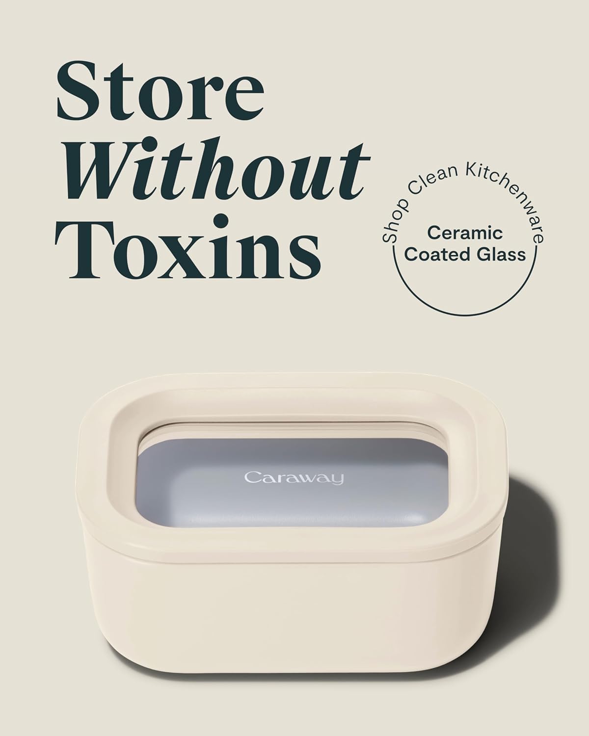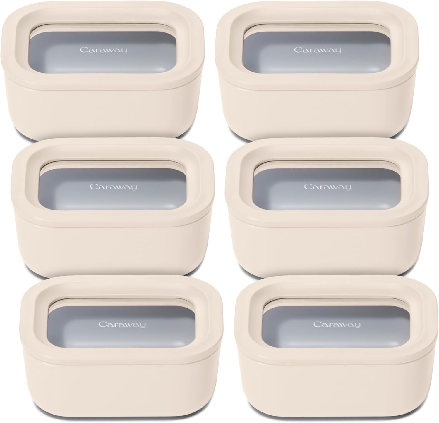 Caraway 6pc Glass Food Storage Set - 2.6 Cup Storage Containers For Food (6) - Non-Toxic Ceramic-Coated Glass - Air Release Technology - Compact & Stackable Design - Cream
