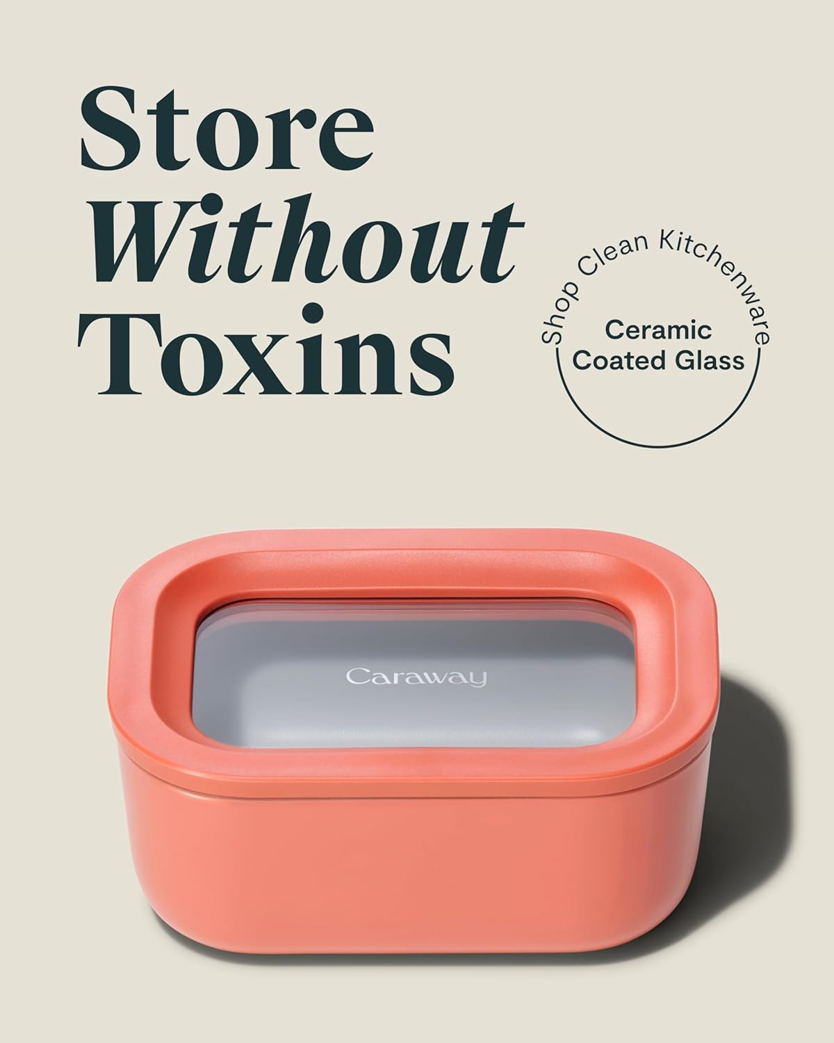 Caraway 6pc Glass Food Storage Set - 2.6 Cup Storage Containers For Food (6) - Non-Toxic Ceramic-Coated Glass - Air Release Technology - Compact & Stackable Design - Perracotta