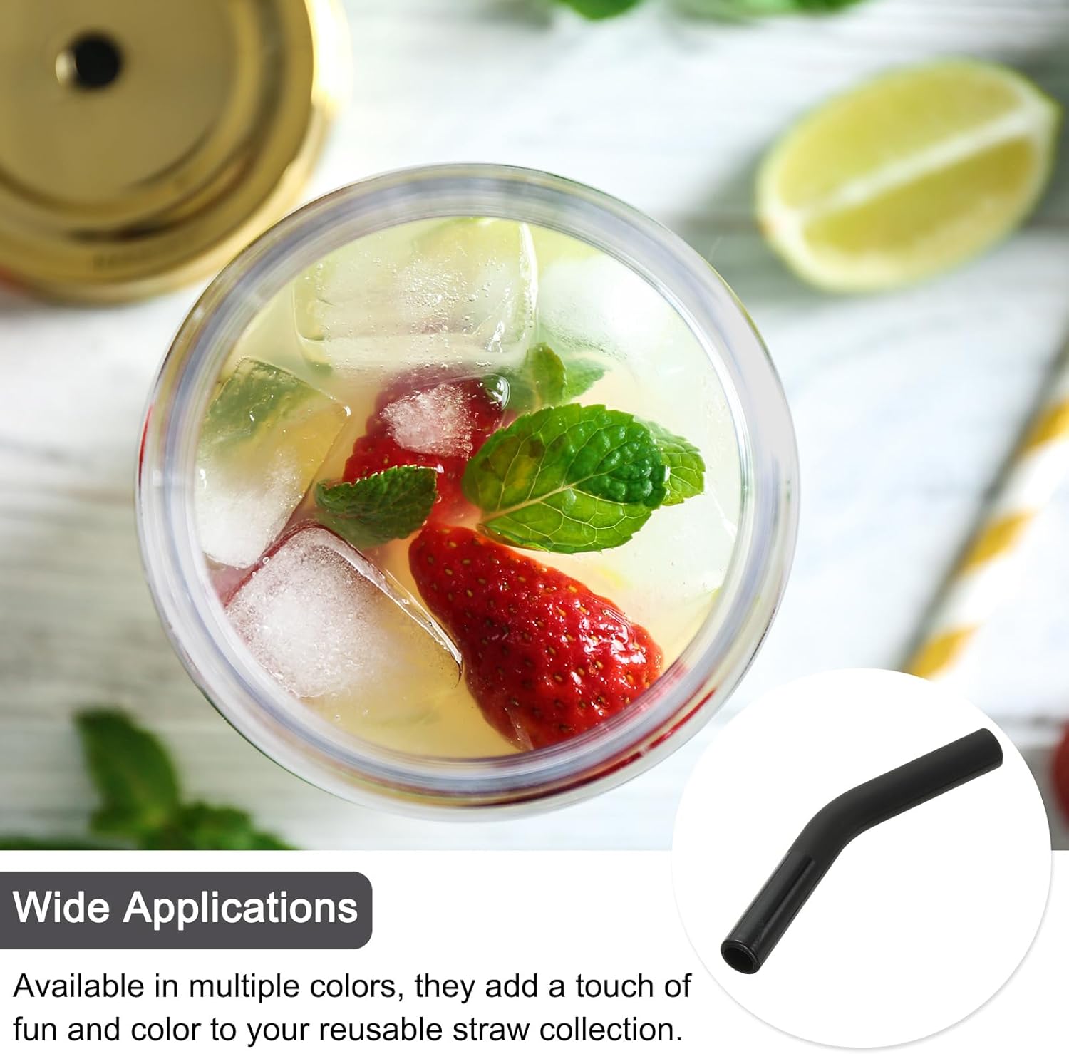 - [Product Dimension] Outside Diameter: 10mm/0.39"; Inside Diameter: 8mm/0.31"; Height: 87mm/3.43"; Color: Black; Package Contents:10pcs x Reusable Silicone Straw Elbows Tips.